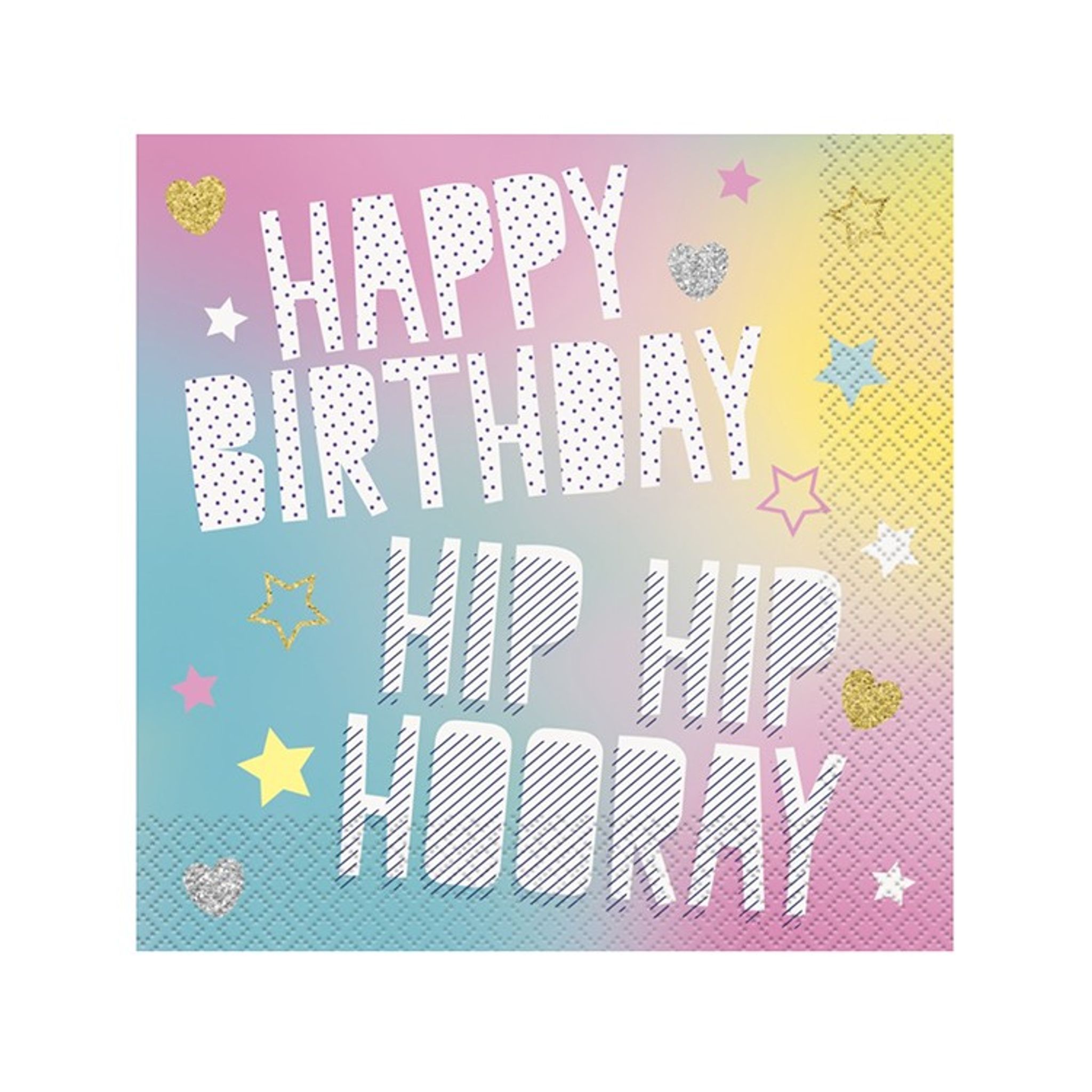 Servetter Enhörningskalas. Servetter i färgerna rosa, turkos och gul med texten Happy Birthday perfekt för att fixa en snygg dukning till födelsedagskalaset.