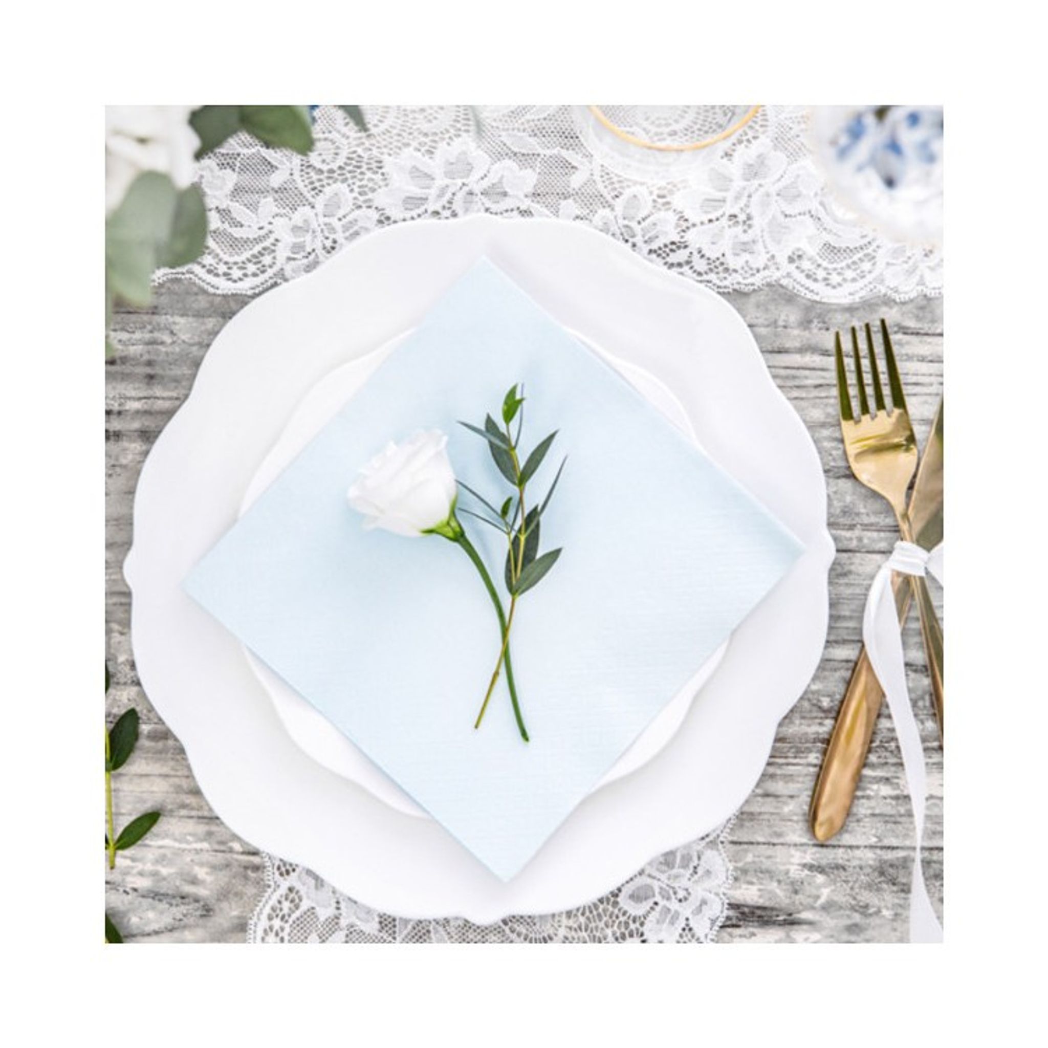 Lunchservett 33x33 cm, färg ljust babyblå Förpackningen innehåller 20 st servetter. Förutom dessa hittar du ett stort utbud av olika servetter hos oss.