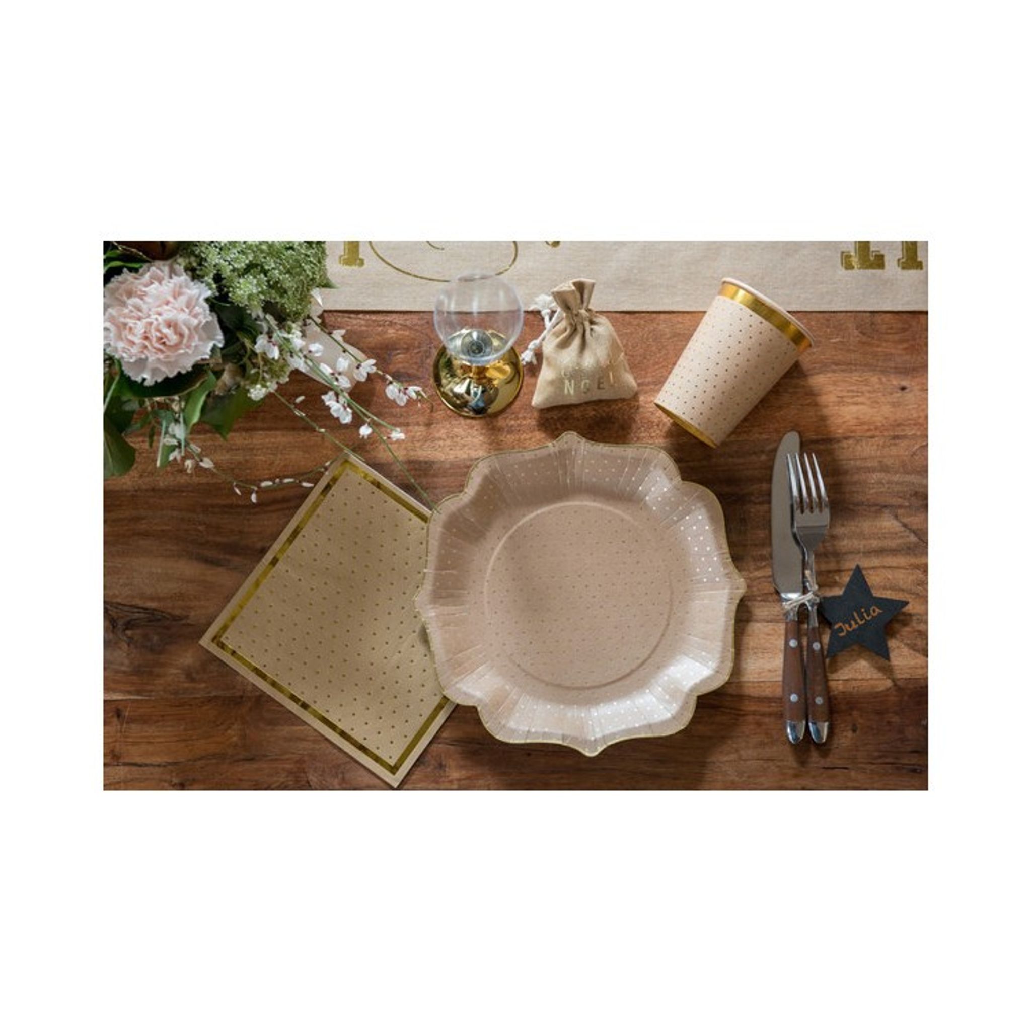 Snygga lunchservetter i naturfärg med en guldig ram samt små prickar i guld. Ett perfekt sätt att skapa en festlig dukning när det är dags för kalas!