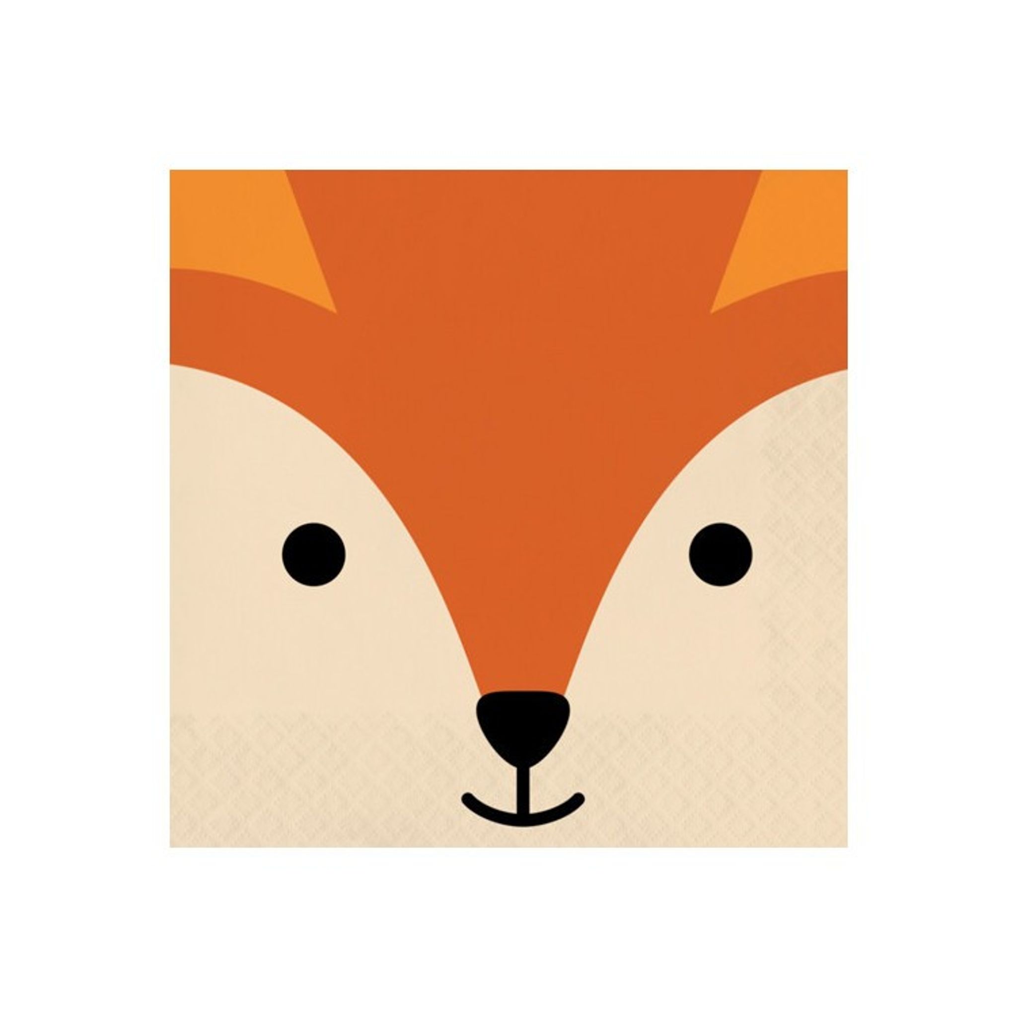 Lunchservetter med härligt orange färg med motiv av en räv. Duka gärna tillsammans med övriga kalasprodukter med räv-motiv för ett fint barnkalas.