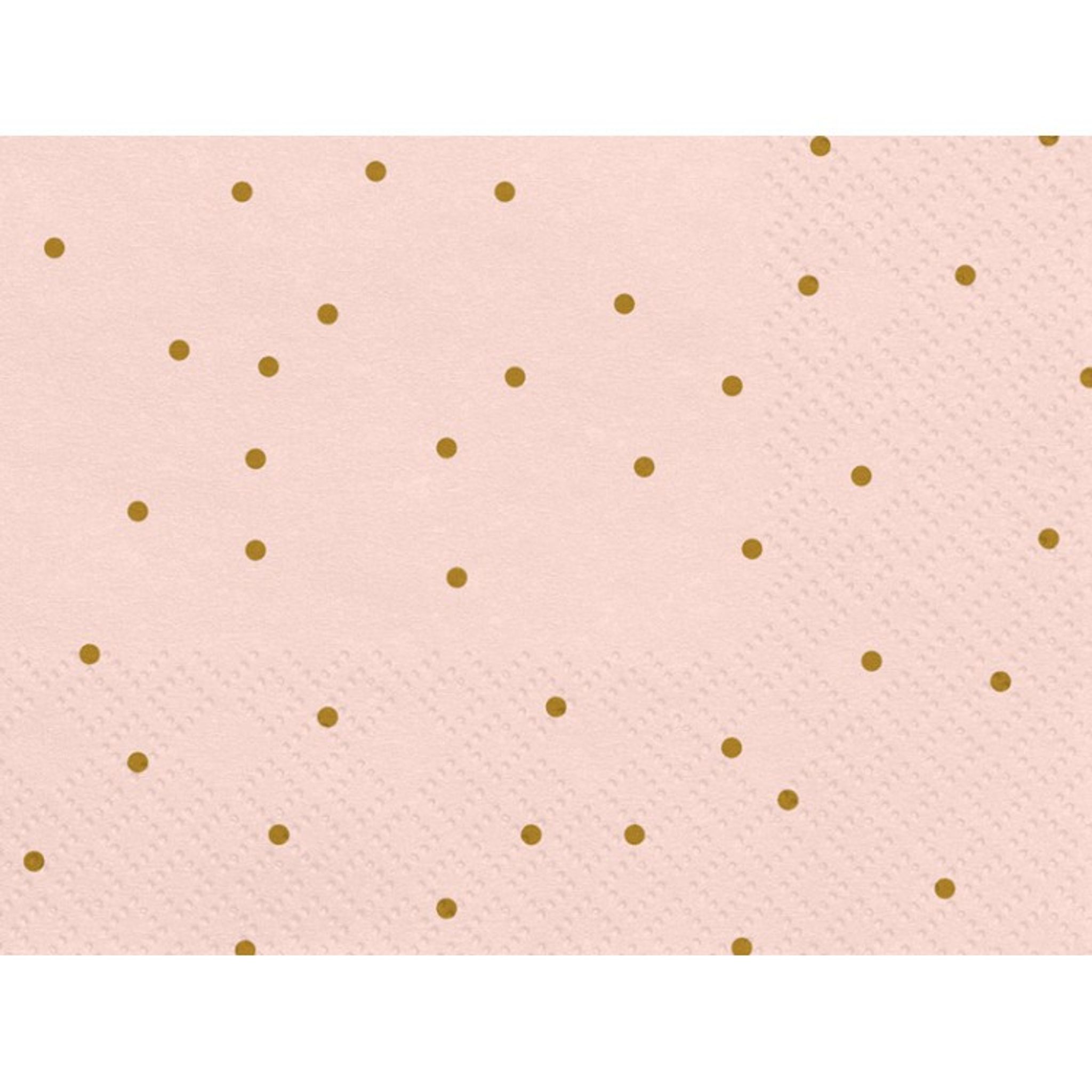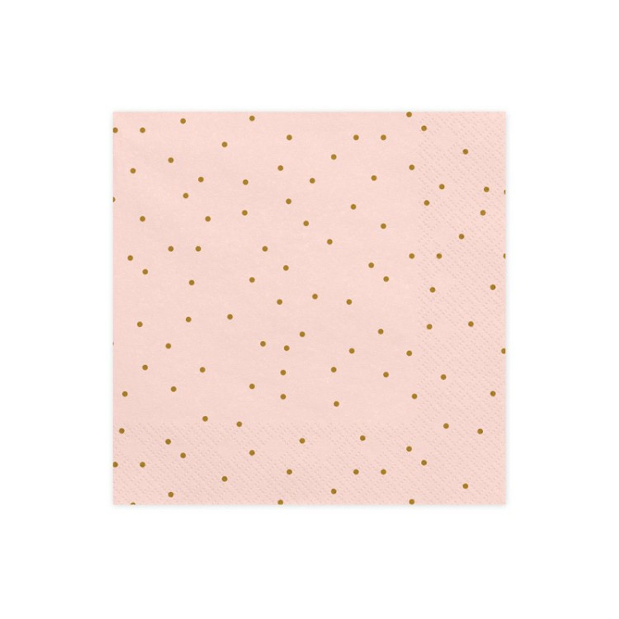 Ljusrosa servetter med prickar i guld är den perfekta mixen för att få till en vacker dukning till exempelvis dopet eller babyshowern. Servetterna är också fina på kalasbordet inför kalasteman såsom enhörning.