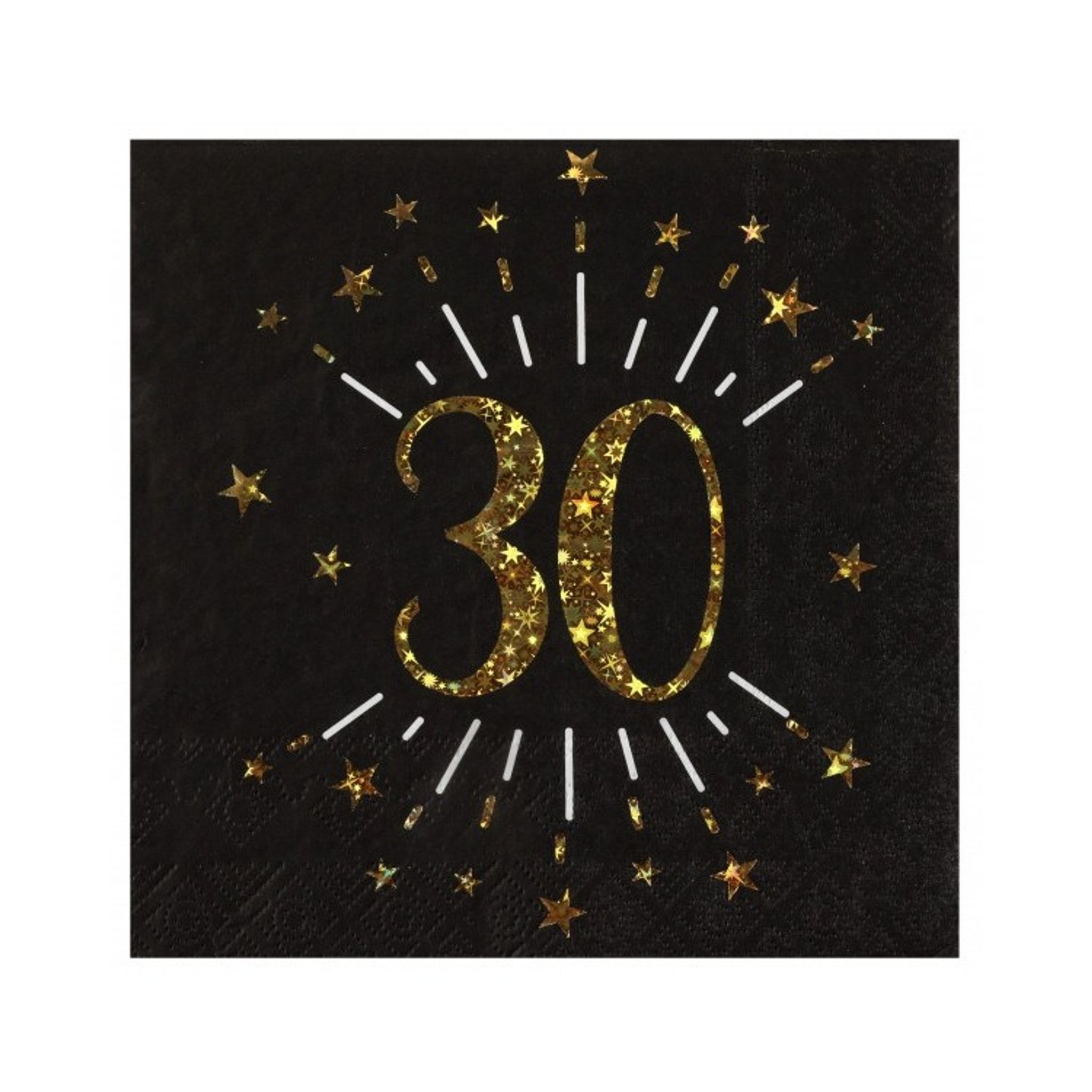 10 st snygga svarta servetter med 30 i guld. Servetterna har även dekorationer i både guld och vitt och passar perfekt till dukningen när 30-åringen ska firas.