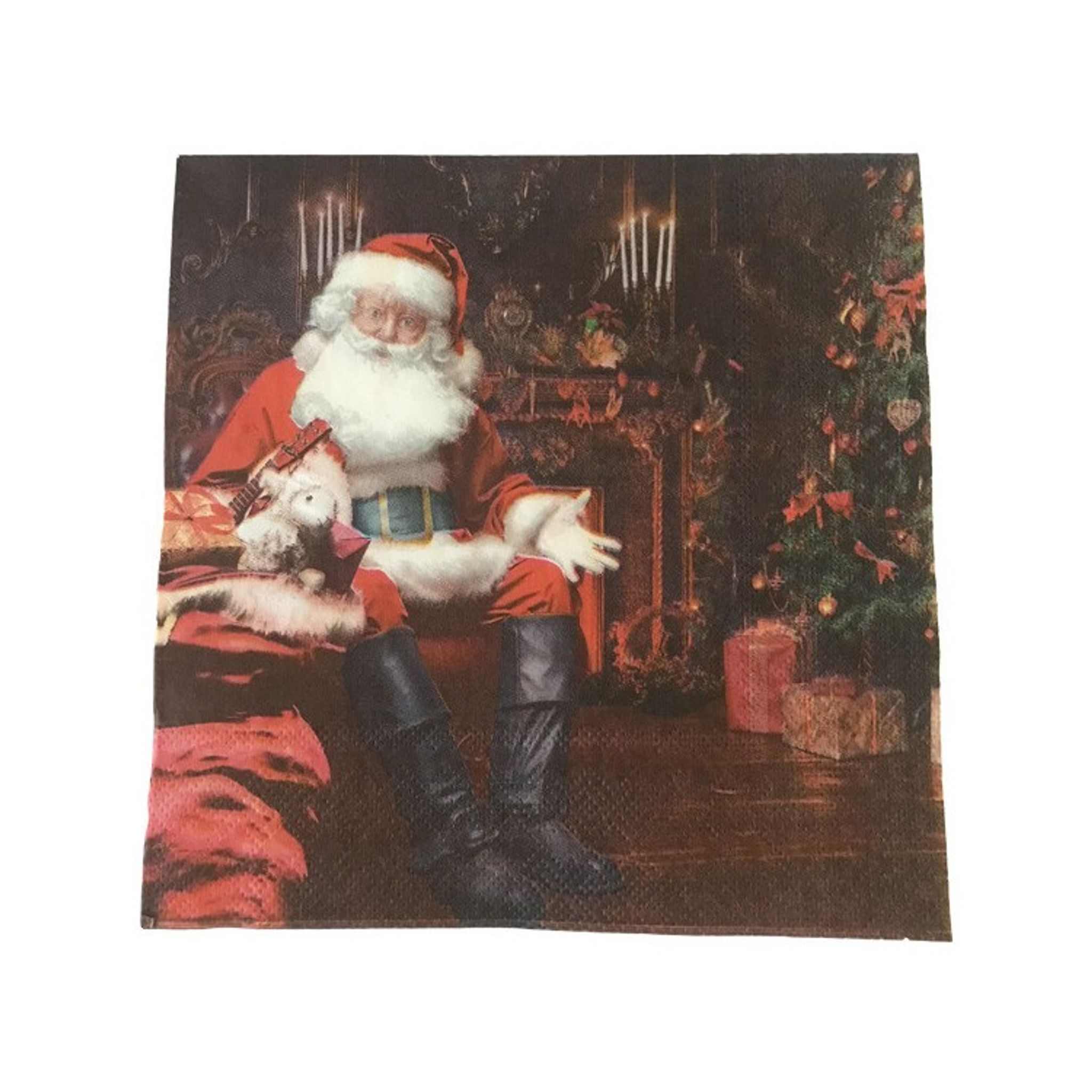 Mysiga julservetter med motiv av tomten som sitter framför öppna spisen. Dessa servetter är med andra ord perfekt att använda när julbordet ska dukas.