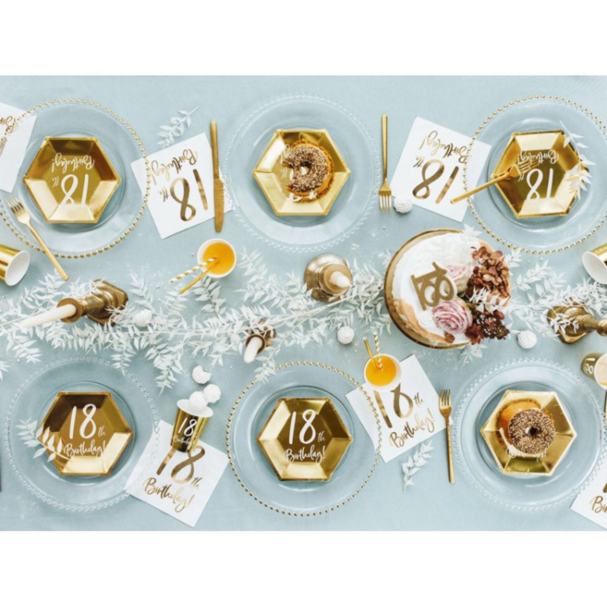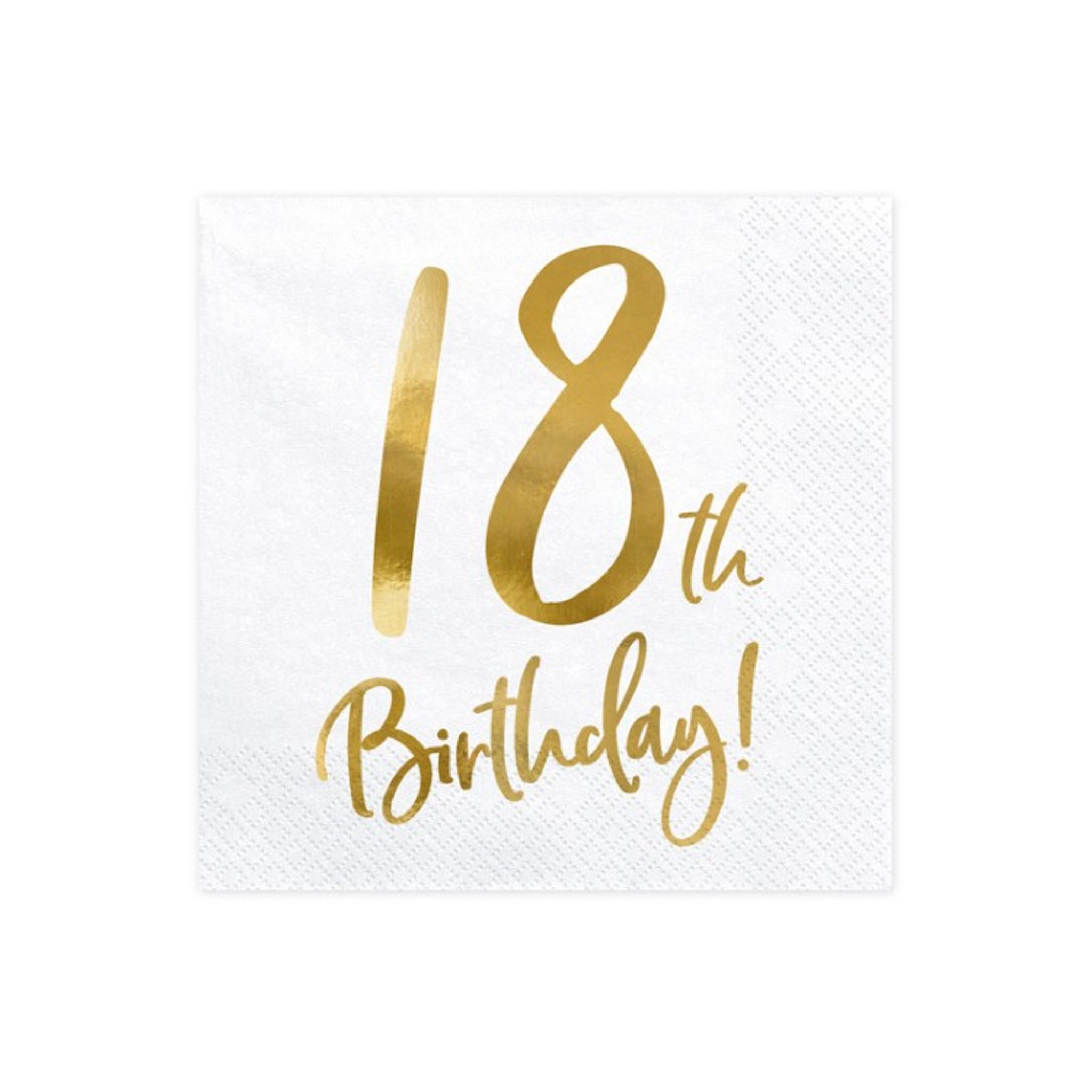 Dessa snygga servetter i vitt med guldtexten Happy "18th birthday!" blir en perfekt detalj till festdukningen.