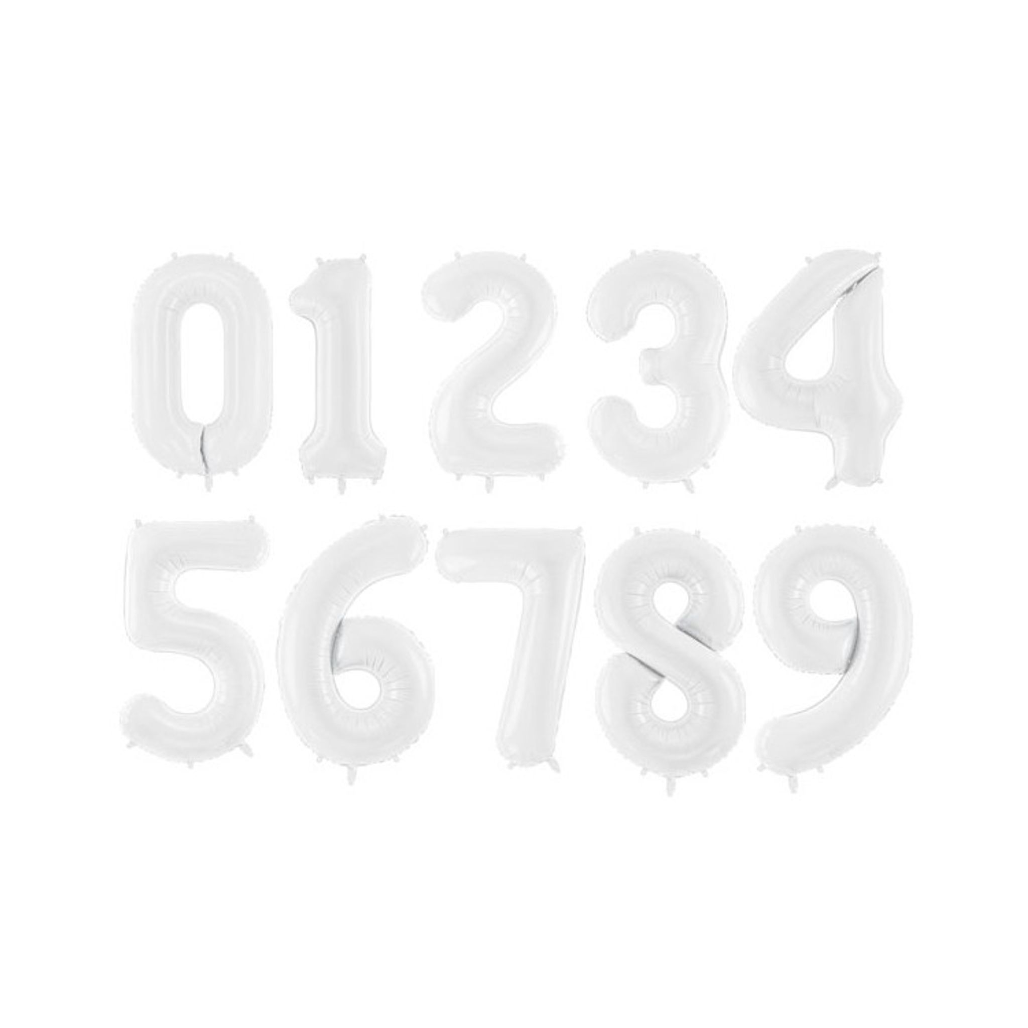 Sifferballonger i färgen vit. Välj den siffran som passar ditt party. Effektfull festdekoration till födelsedag, jubileum eller nyårsfest.