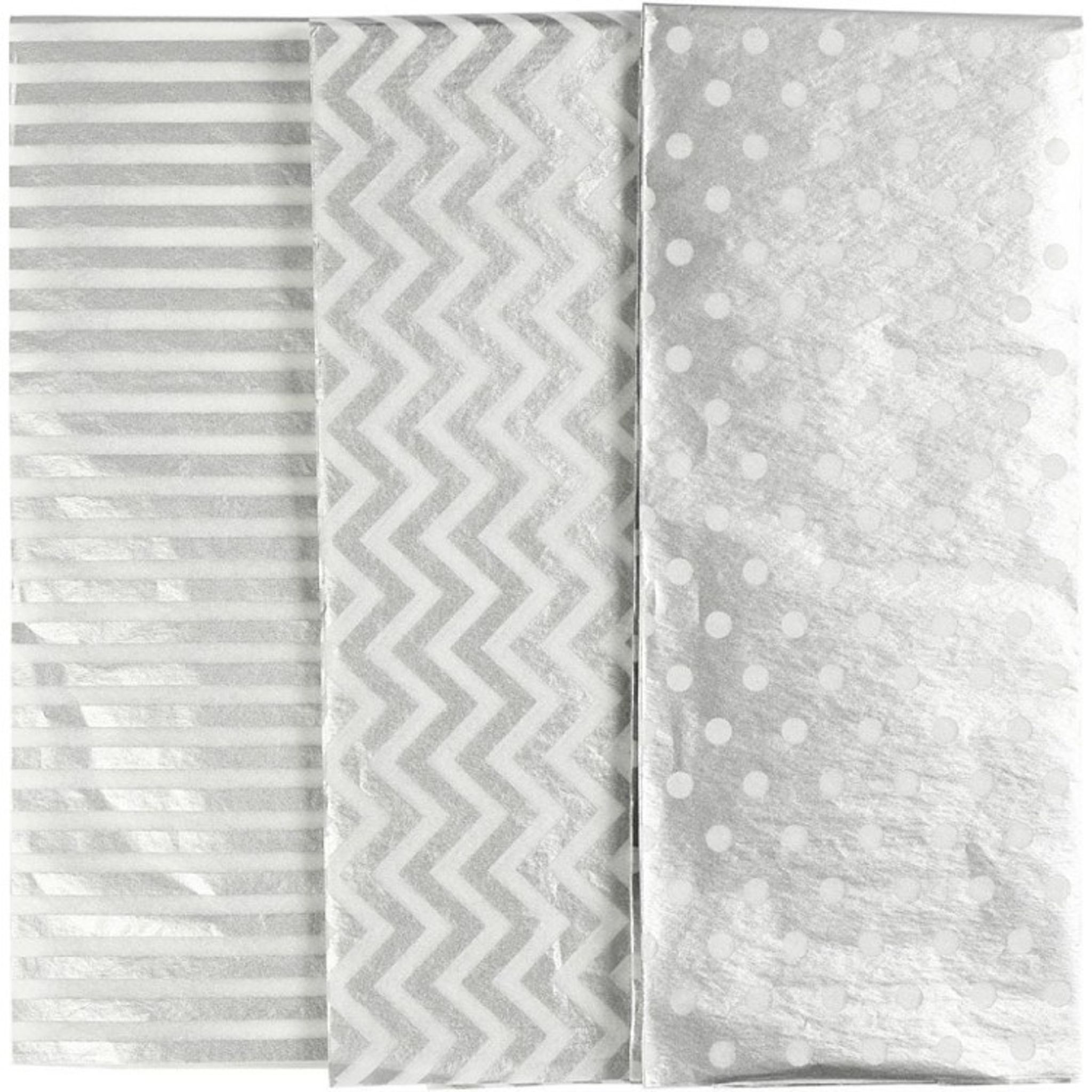 Silkespapper gör den gåvan du ger bort extra dekorativ. Dessa silvermönstrade silkespapper passar såväl bröllopspresenten som studentpresenten eller doppresenten. Lägg i presentpåsen eller presentkartongen, en extra fin detalj för den som mottager det.