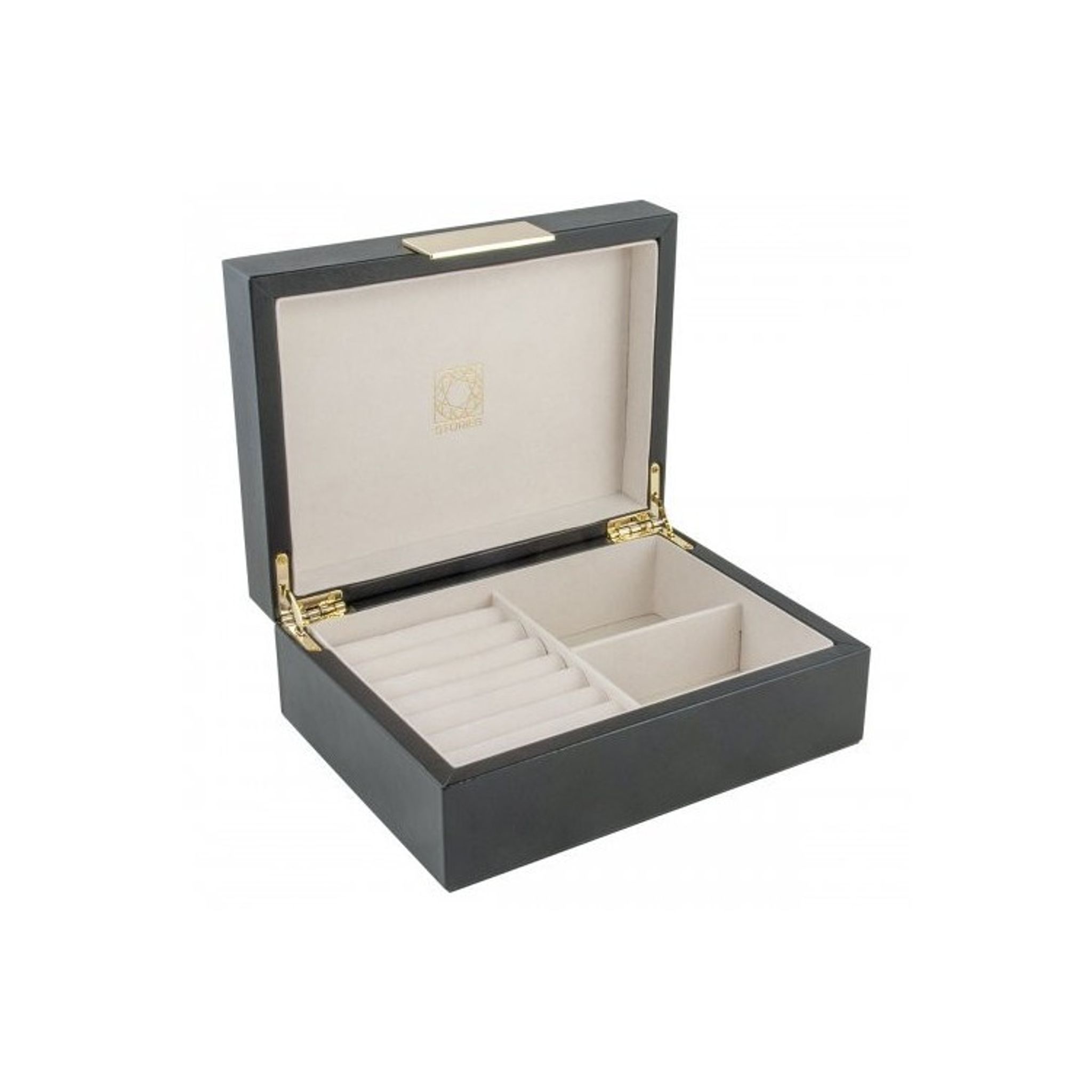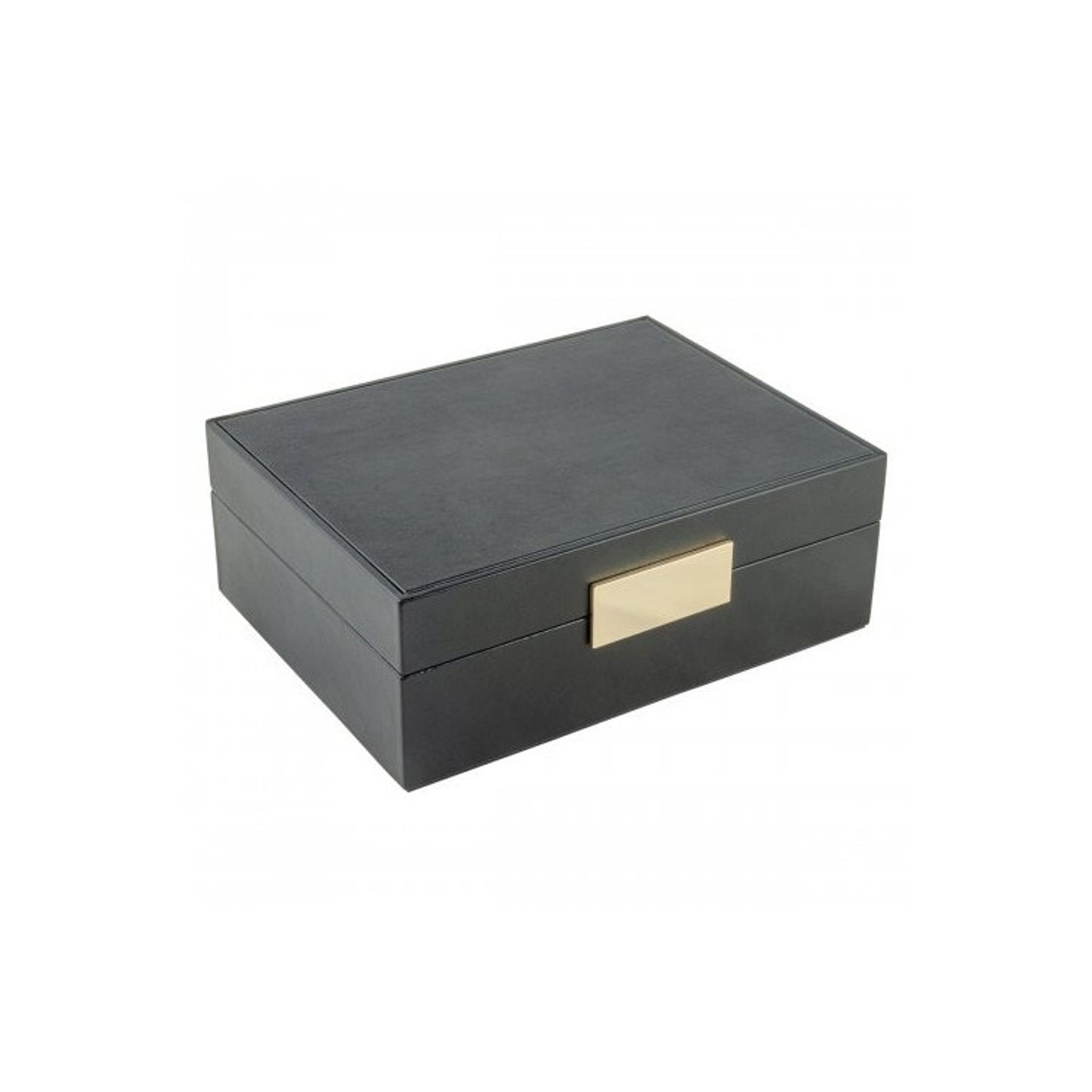 Smyckeskrin från Stories med magnetlås i locket. Guldfärgade detaljer, bricka på skrinets framsida och gångjärn. Storlek: 20,5x15,5x8cm