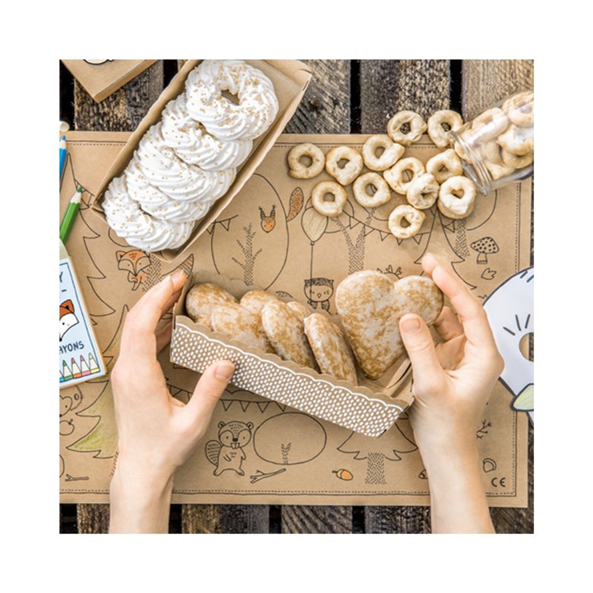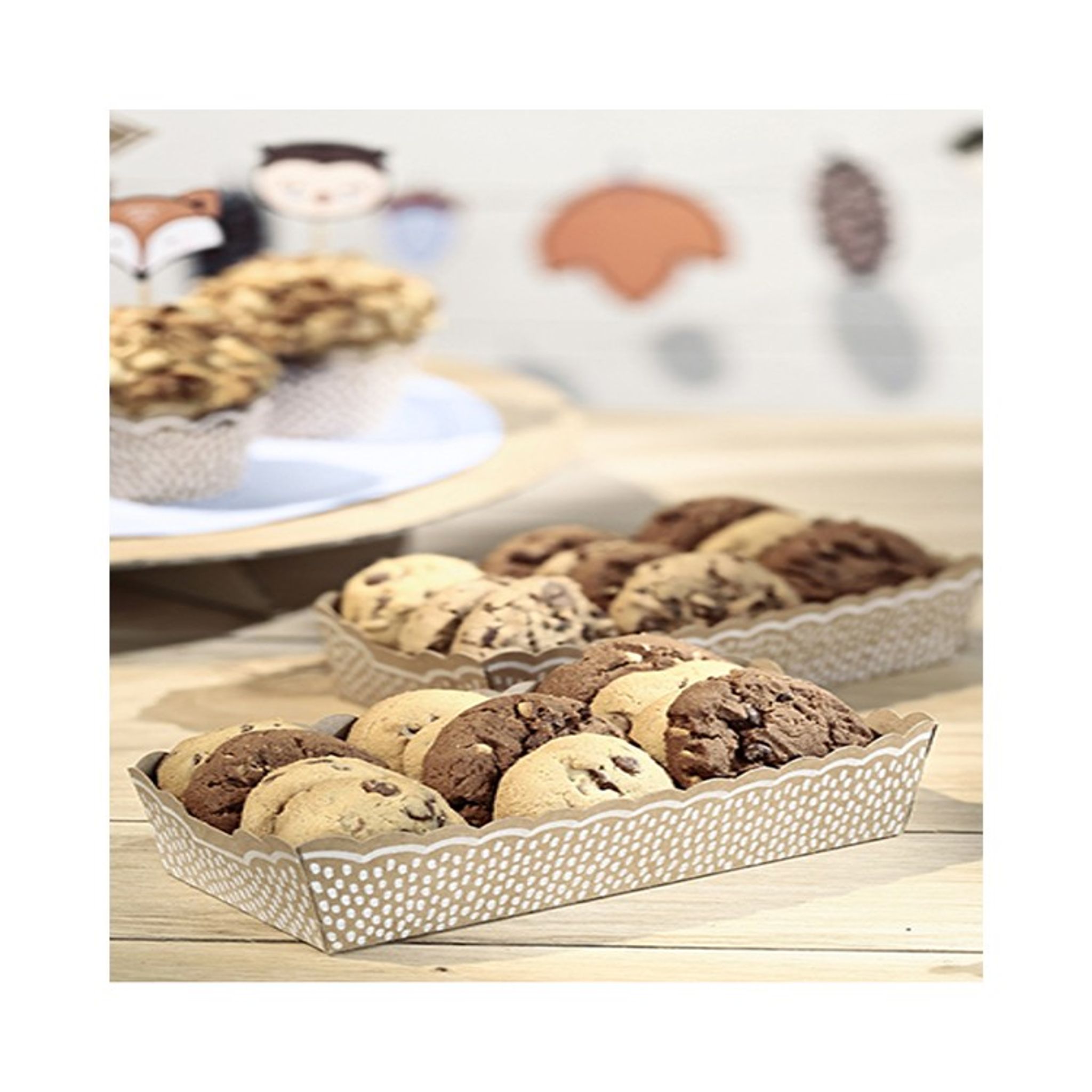 Snacksbägare i brun hårdpapp med vitt mönster passar utmärkt till kakor, frukt, chips, popcorn eller kanske pommes och korv. Priset avser 6 stycken. Storlek: 6,6 x 15 x 4 cm
