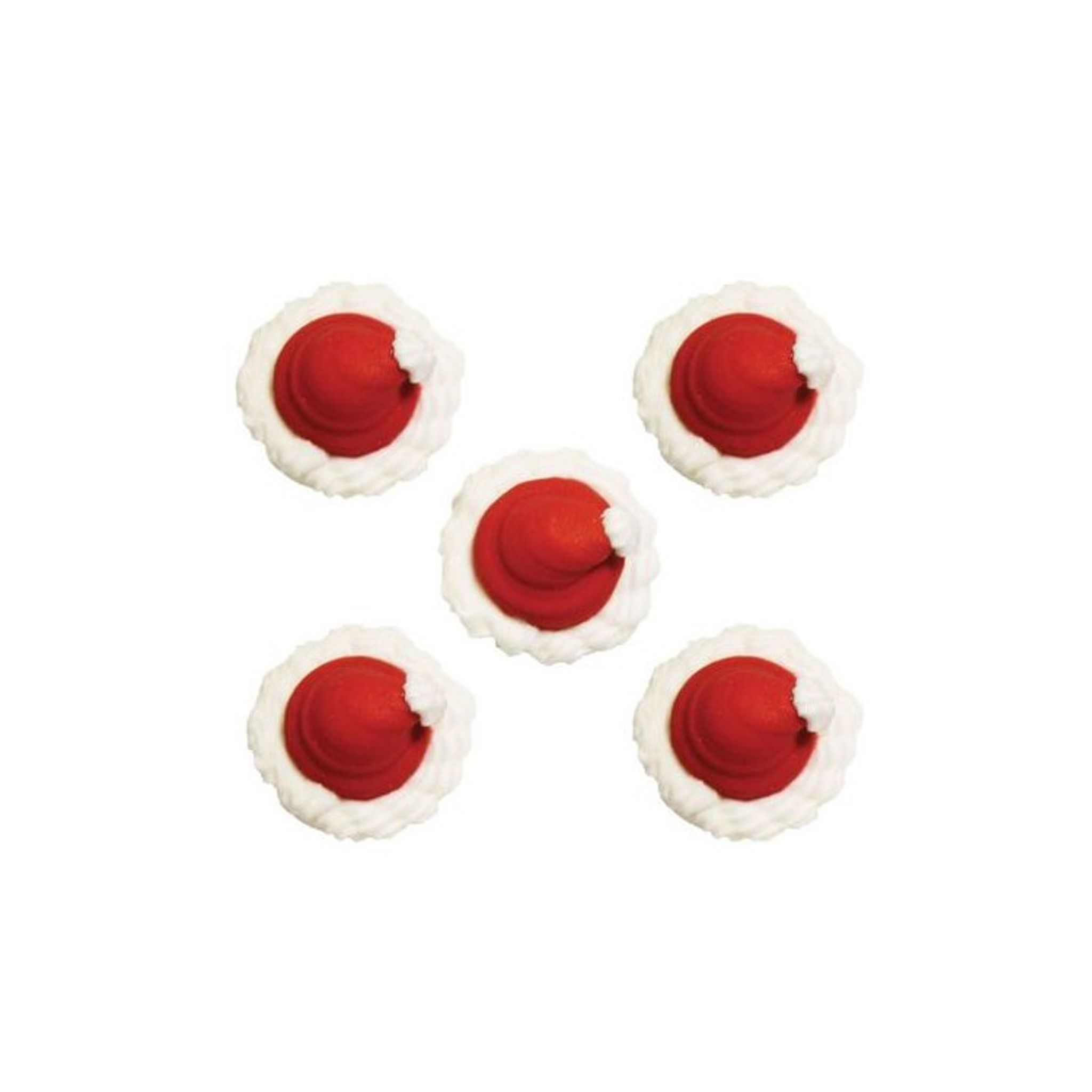 Förpackningen innehåller 5 st sockerdekorationer i form av tomteluvor.