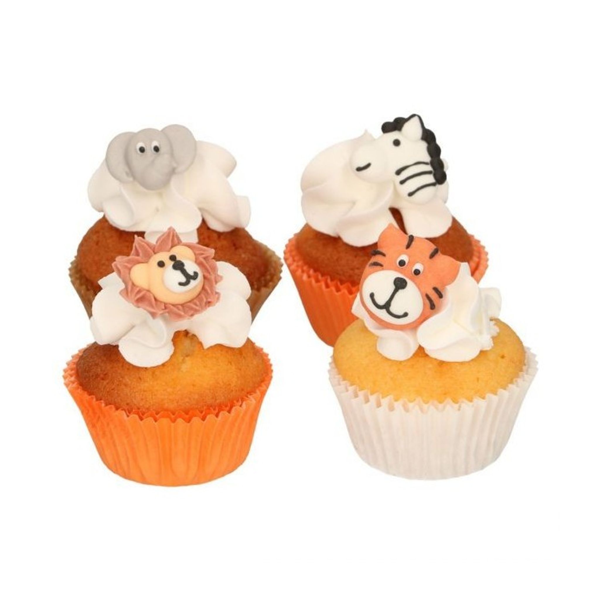 Söta små sockerdekorationer i form av djur från djungelns spännande kretsar. Dekorationerna är fullt ätbara och passar lika bra på tårtor som på småkakor och muffins.