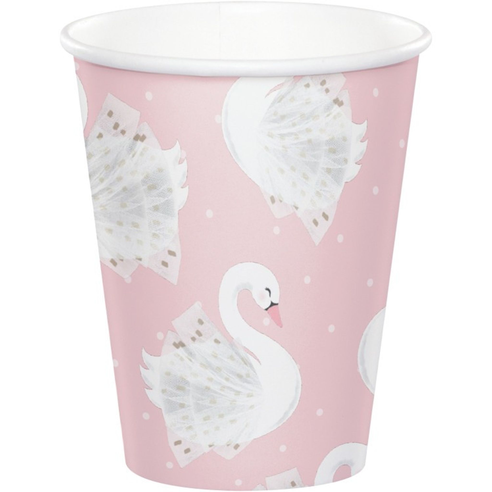 Dessa pappersmuggar i fin rosa färg och med motiv av svanar passar lika bra att fylla med saft till barnkalaset eller annat passande till vuxen-festen och ingen disk krävs när kalaset är över.