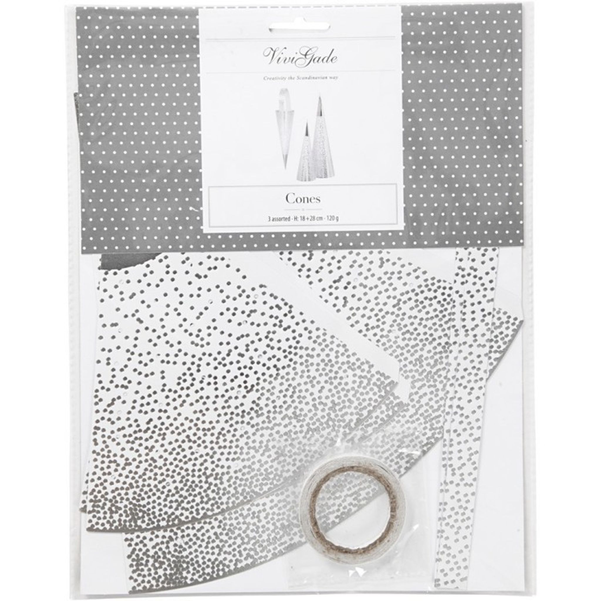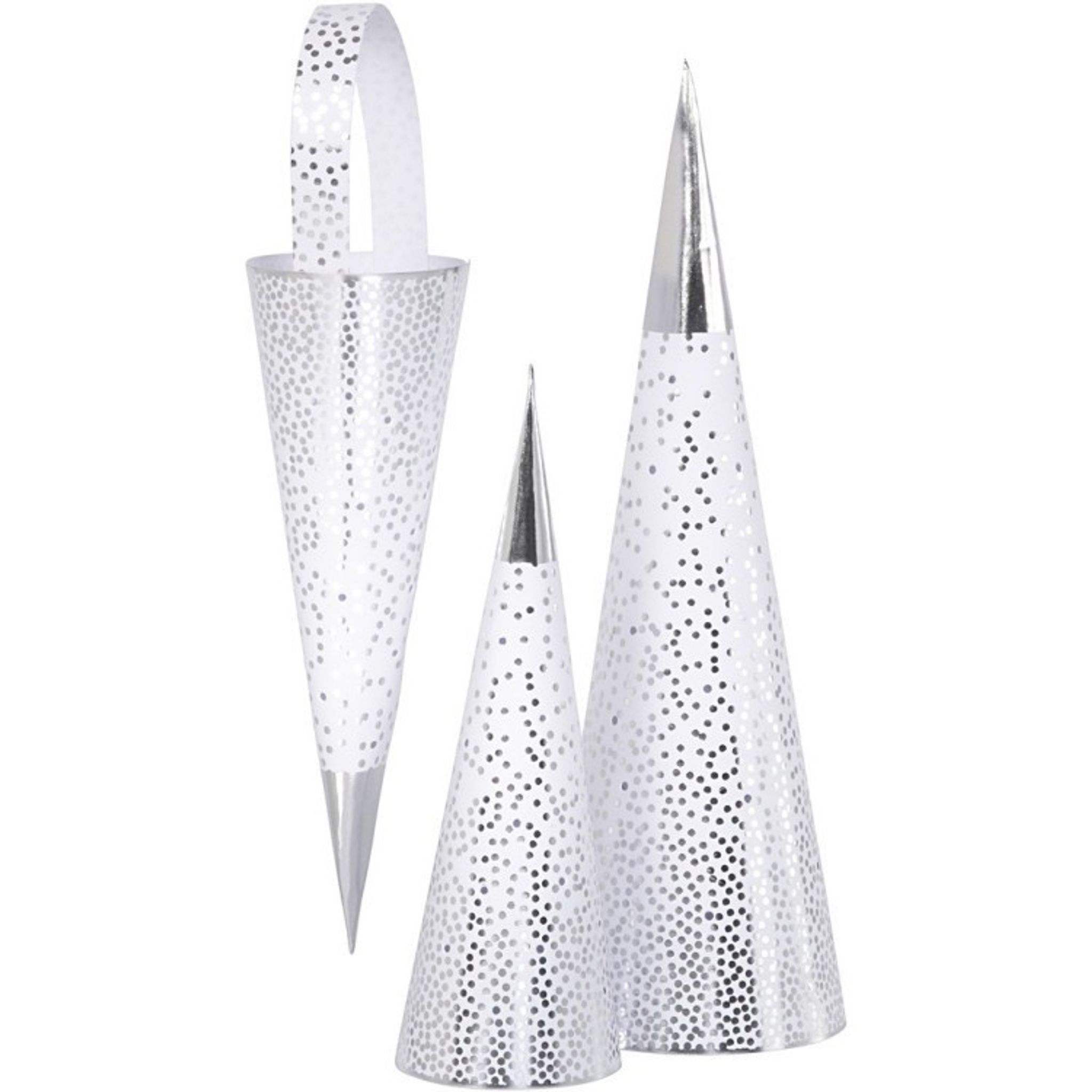 "Sätt ihop själv" strutar av papper med design i metallfolie och små utstansade hål. Sätts ihop till strutar och används med handtag för att hängas upp och utan handtag som t.ex. dekorativa lampskärmar på LED ljus.