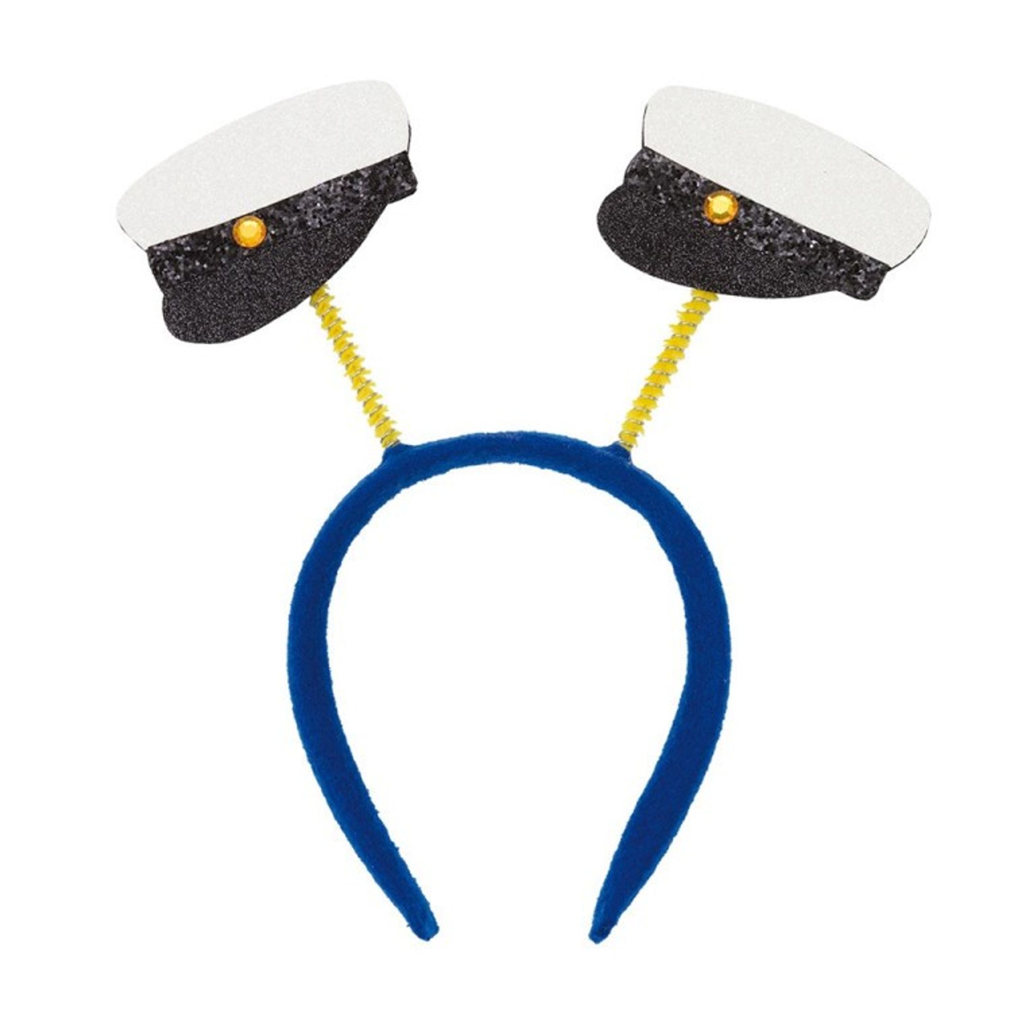 Det här festliga diademet i form av studenthattar är en härlig detalj på den stora dagen. Ge till den blivande studenten eller överraska honom eller henne med att själv komma i diademet på studentmottagningen. En roligt gest för att fira den nyexaminerade. Diademet är i blått och studentmössorna fästa i gula stänger omgivna av fjädrar. På så sätt gungar hattarna när du rör på huvudet. Studenthattarna är glittriga i svart och vitt på framsidan samt helsvarta på baksidan.