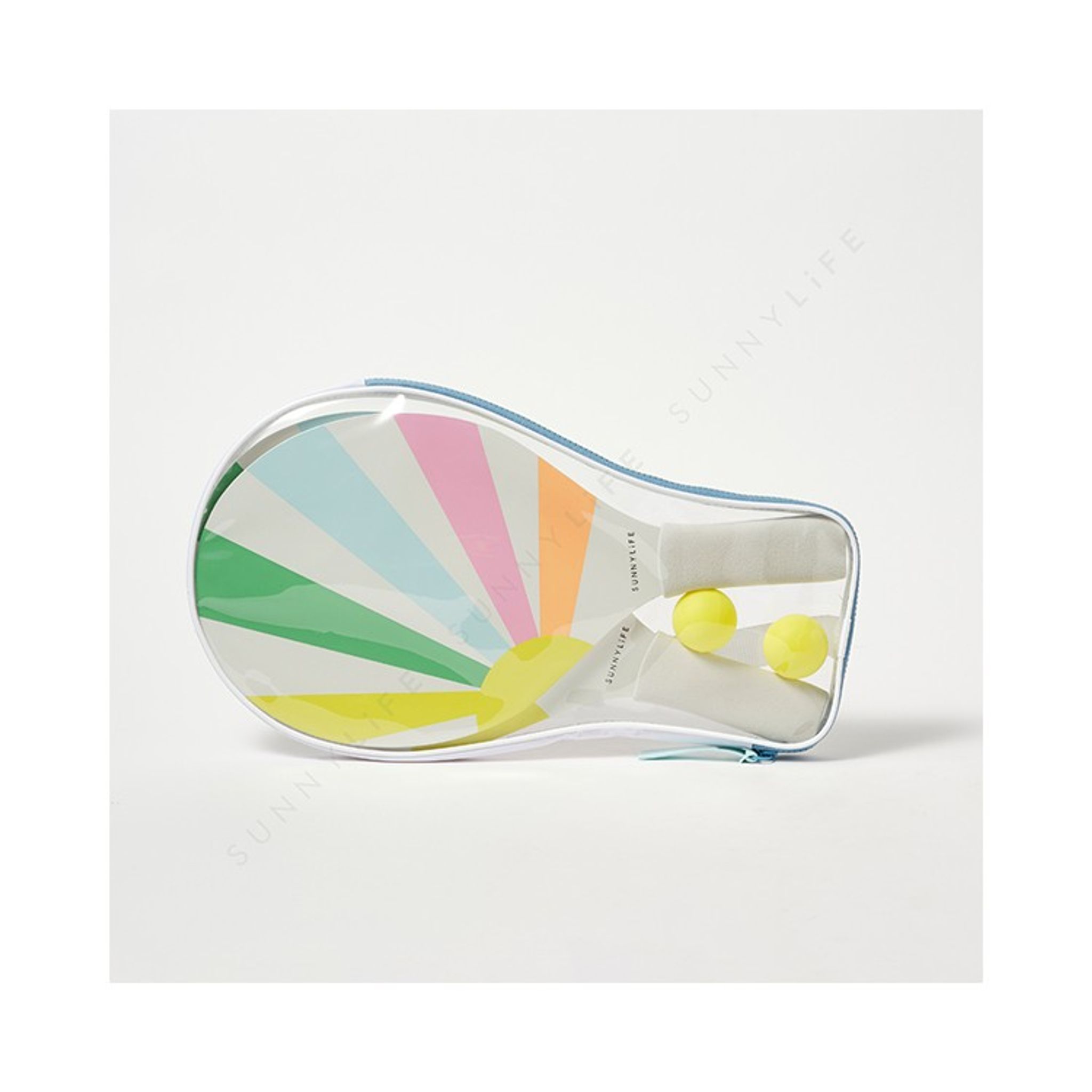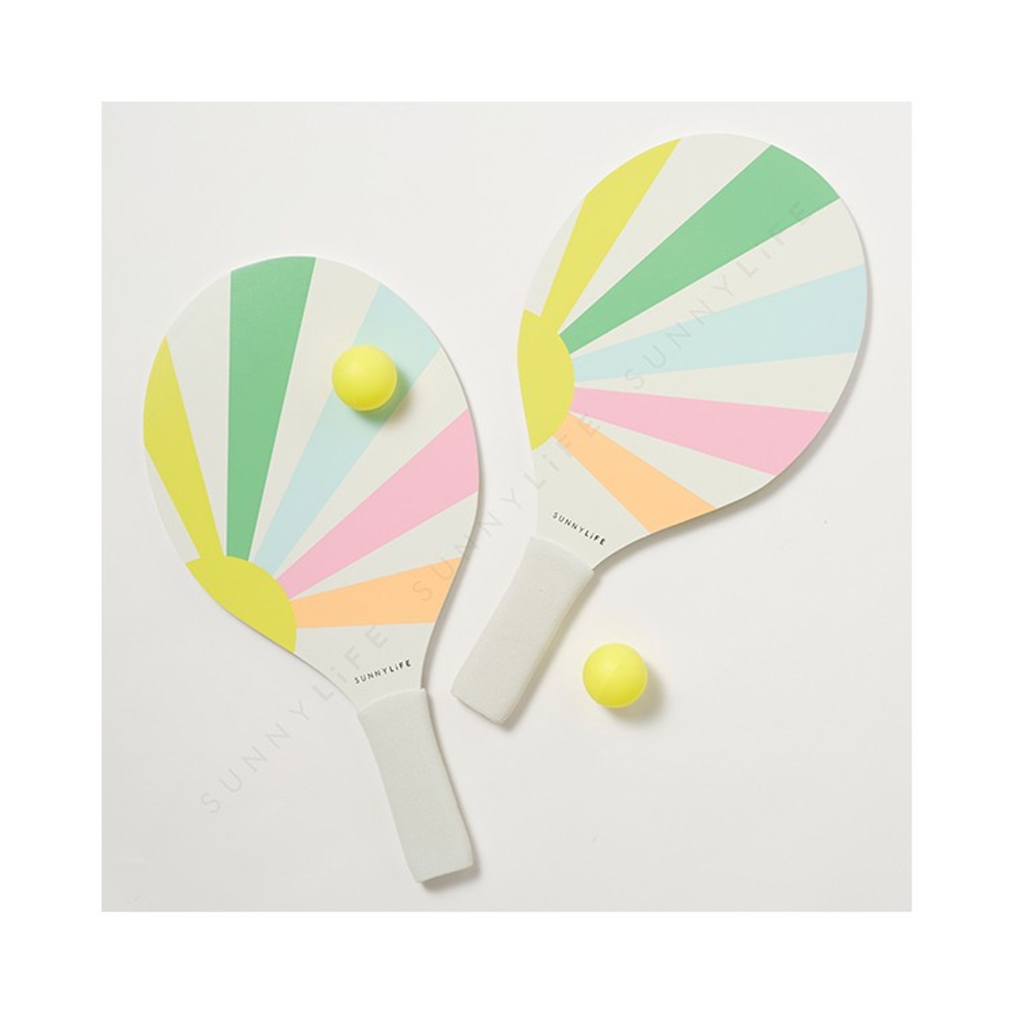 Strandtennis-set i pastell färger, perfekt för aktivitet vid stranden eller i trädgården. I priset ingår två racket, två bollar samt en förvaringsväska.