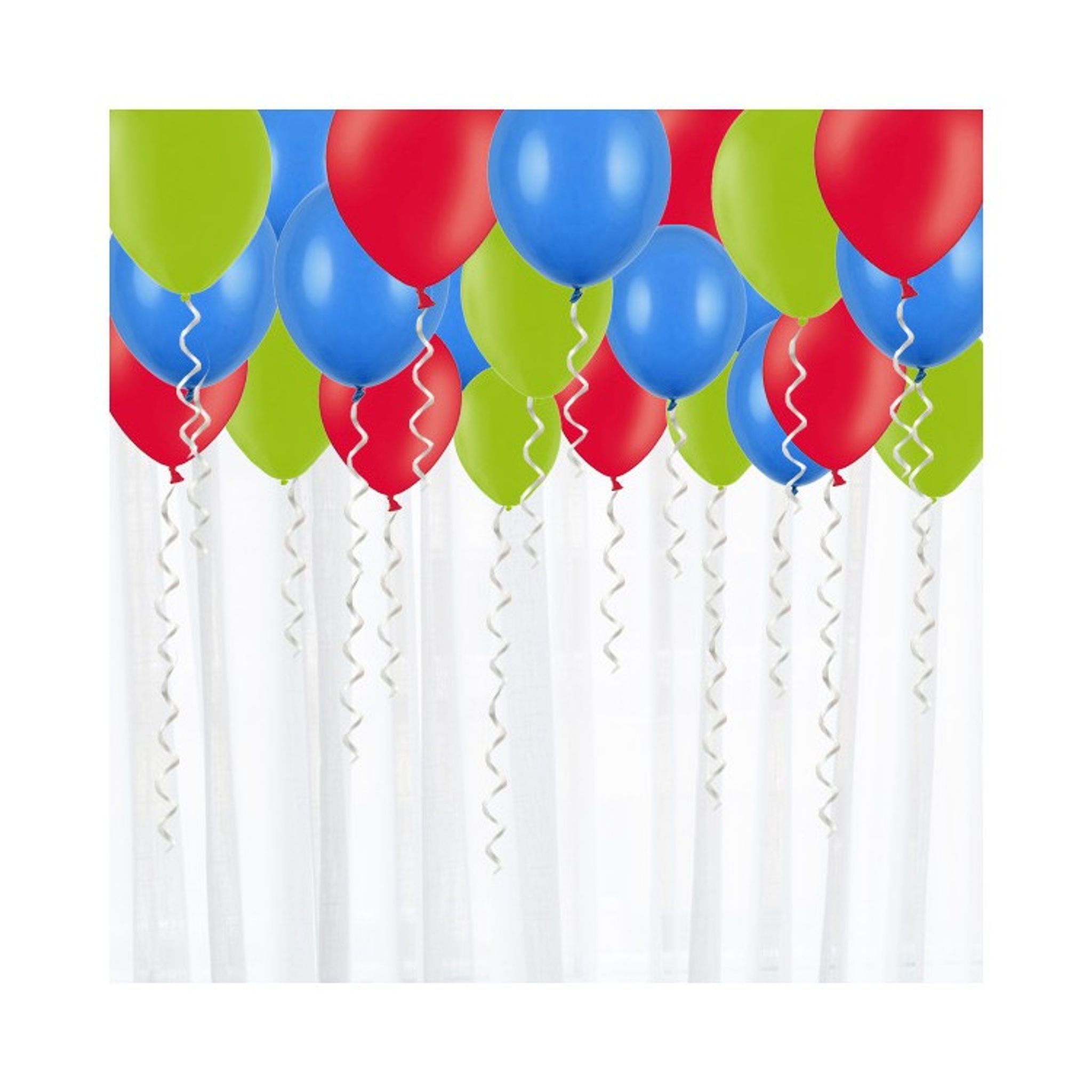 Takballongskit med ballonger i rött, blått och limegrönt till kalas och fest.