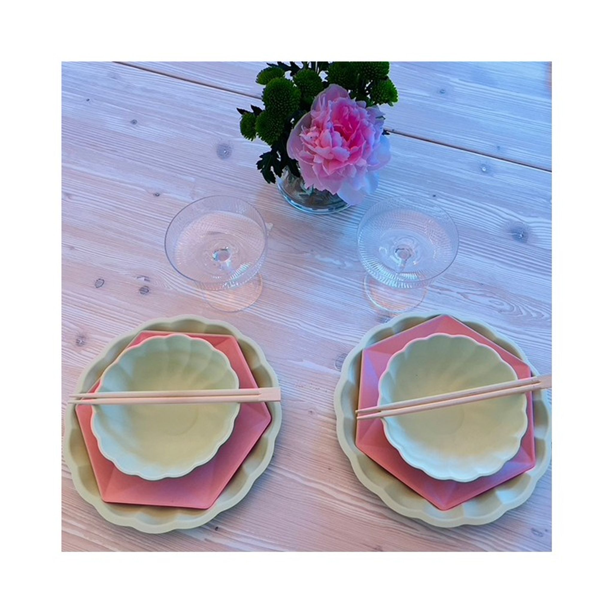 Skapa en härlig dukning med våra fina tallrikar i aprikos-rosa i rund elegant form. Tallriken ger en lyxig känsla och är tillverkade i förnybart material och innehåller inte någon plast.