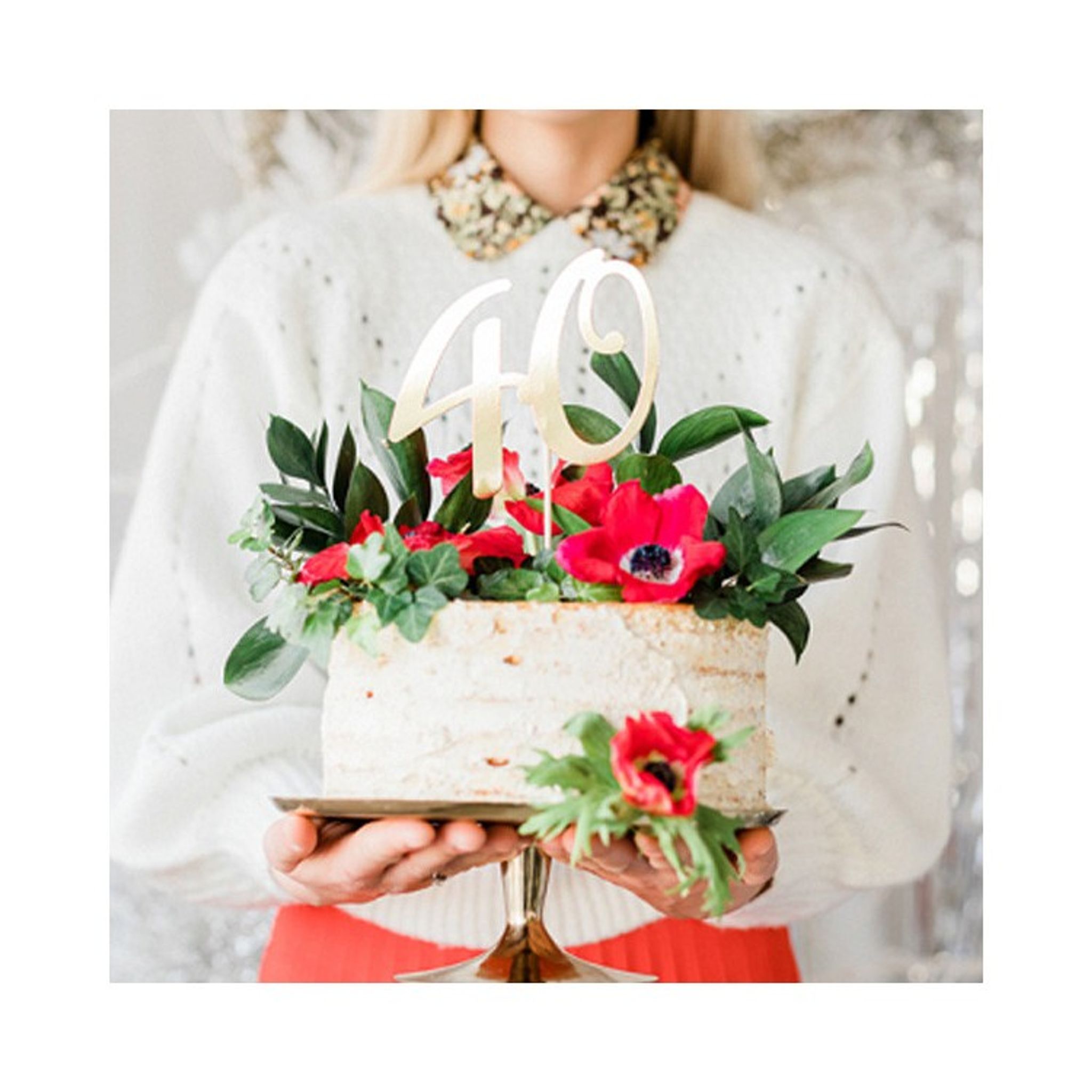 Snygg tårtdekoration i form av siffran 40 att dekorera tårtan med. Ett perfekt och enkelt sätt att snabbt skapa en lite extra festlig tårta inför 40 års-kalaset. Storlek: Höjd 20 cm Material: Papp (och träpinne)