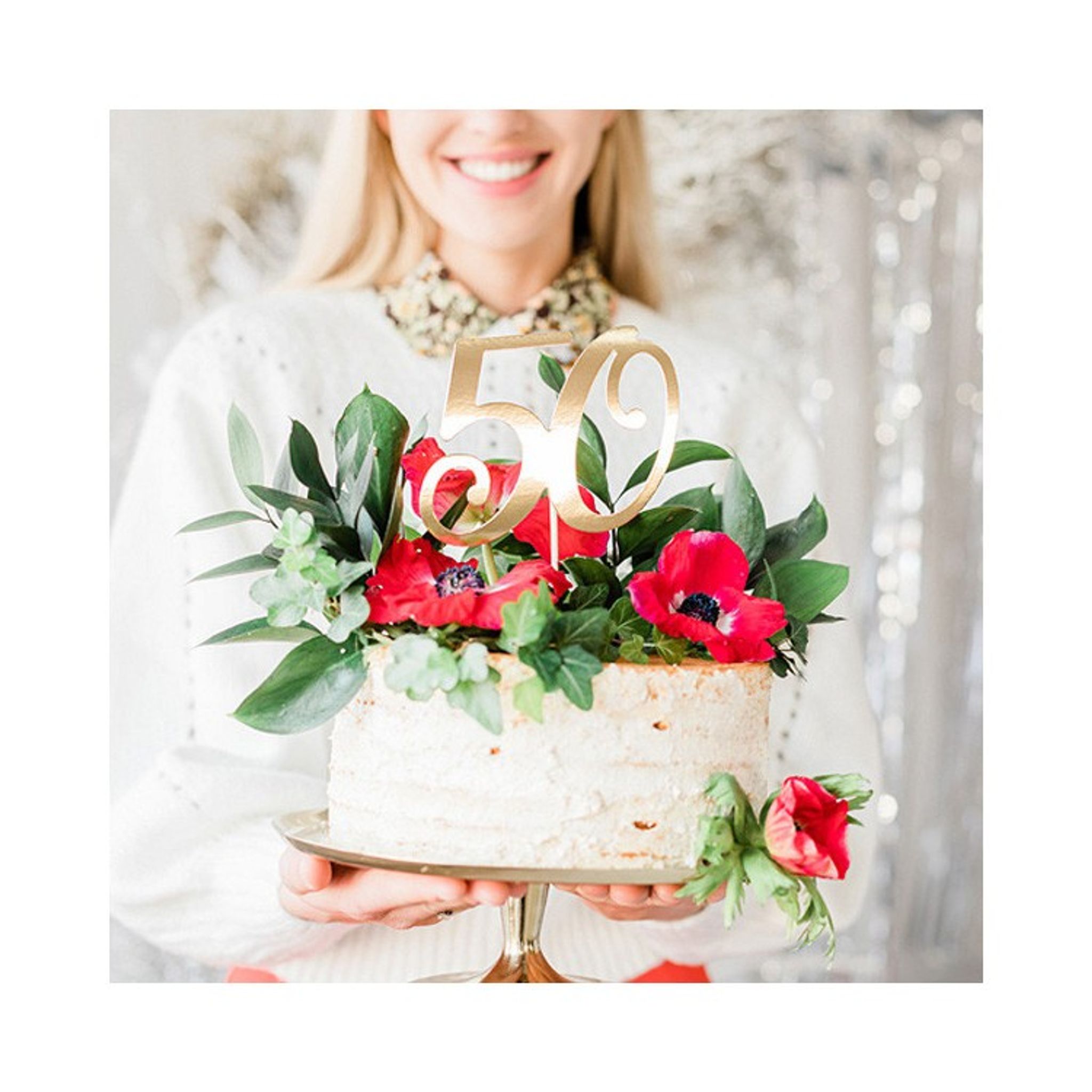 Snygg tårtdekoration i form av siffran 50 att dekorera tårtan med. Ett perfekt och enkelt sätt att snabbt skapa en lite extra festlig tårta inför 50 års-kalaset. Storlek: Höjd 20 cm Material: Papp (och träpinne)