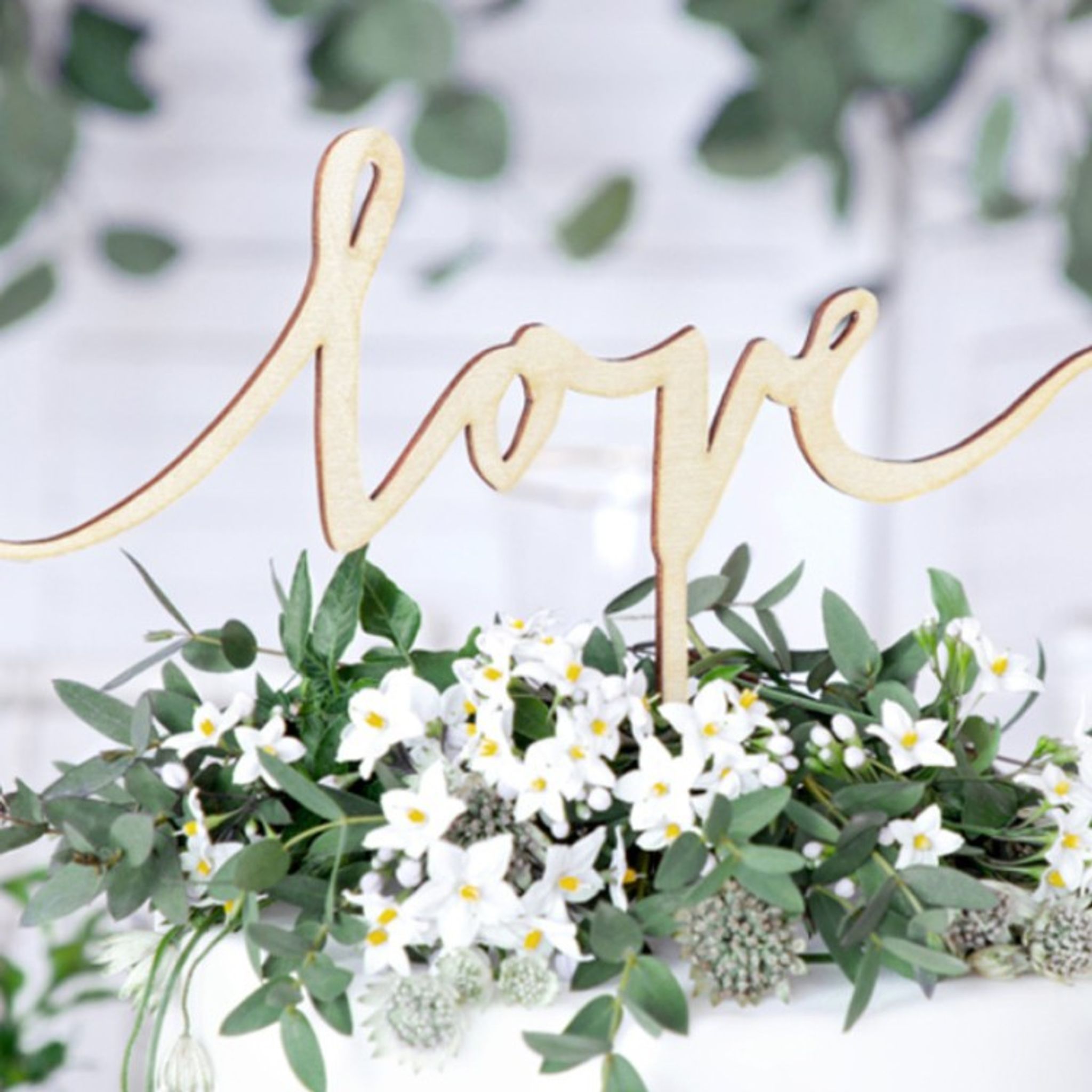 Snygg tårtdekoration i trä med texten "love". Perfekt som dekoration i bröllopstårtan eller när du vill uppvakta någon med lite extra kärlek. Storlek: Ca 23 x 16 cm