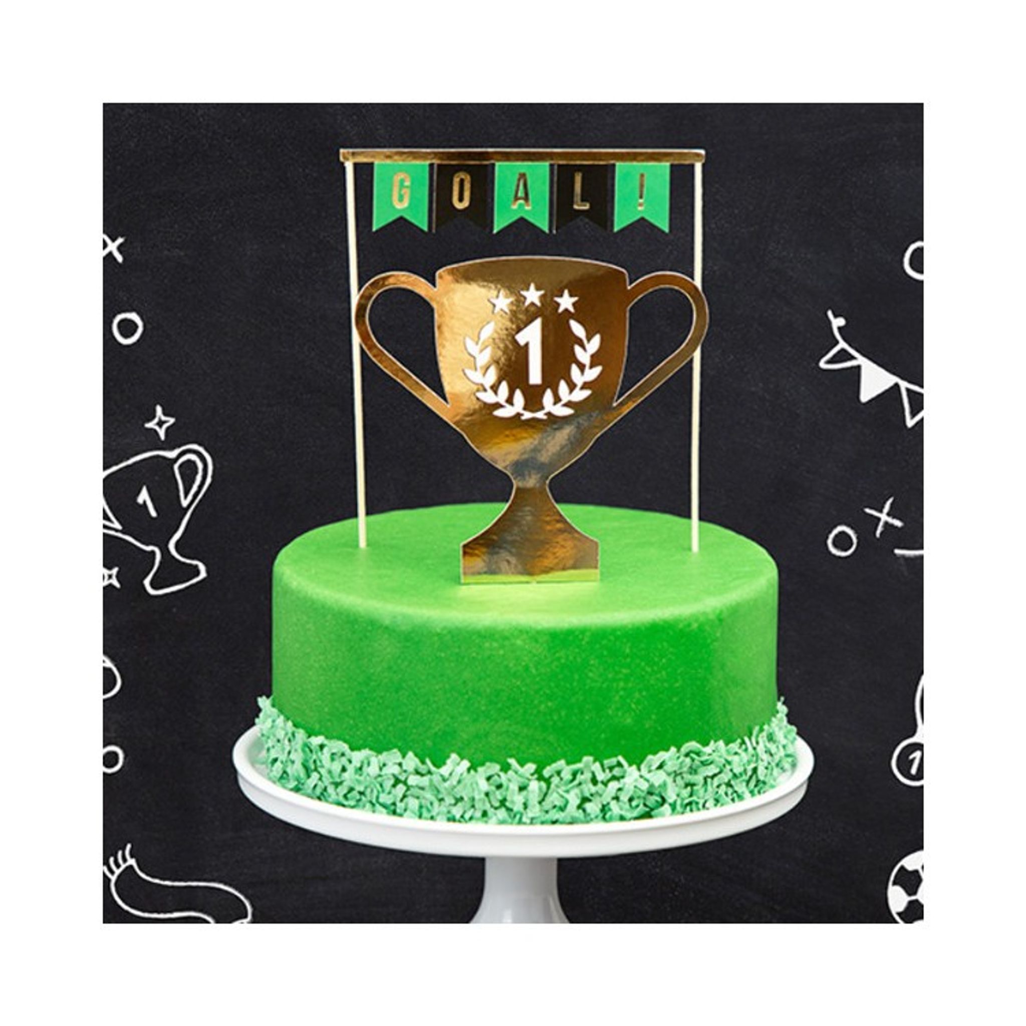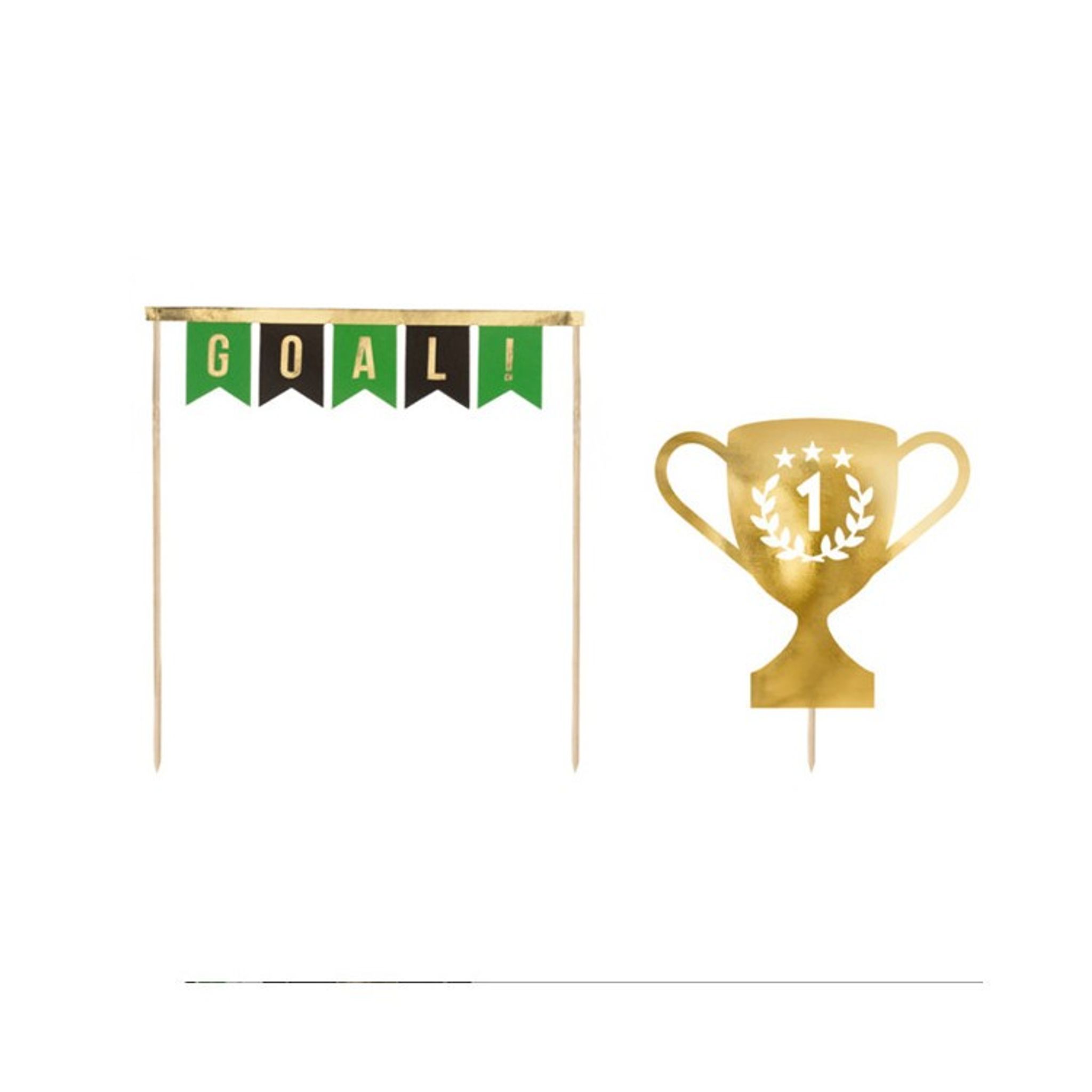 Snygg tårtdekoration (ej ätbar) med fotbolls-tema i 2 delar. Stick bara ner de medföljande pinnarna direkt i tårtan och du har på ett enkelt sätt skapat den allra lyxigaste tårtan till din fotbollsfantast. Perfekt till ett fotbollskalas.