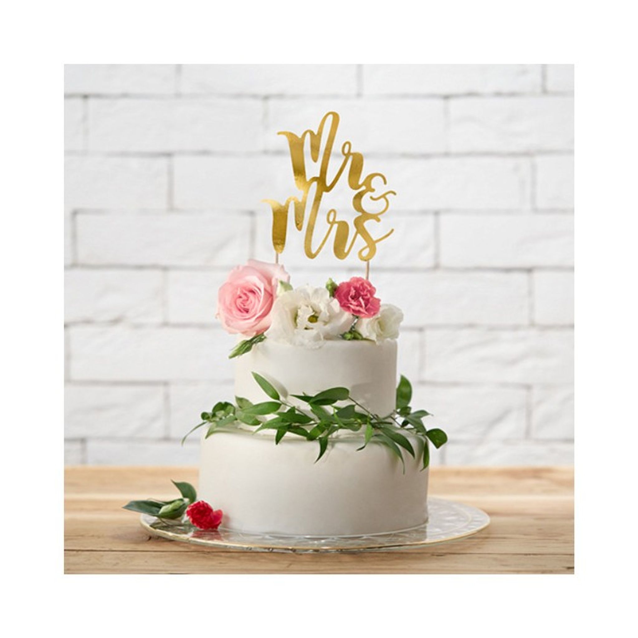 Dekorera tårtan enkelt och snabbt med hjälp av den här tårtdekorationen, i spegelblankt guldpapper med texten "MR & MRS". Skapa en fin bröllopsstämning med hjälp av vårat stora utbud av bröllopsdekorationer.