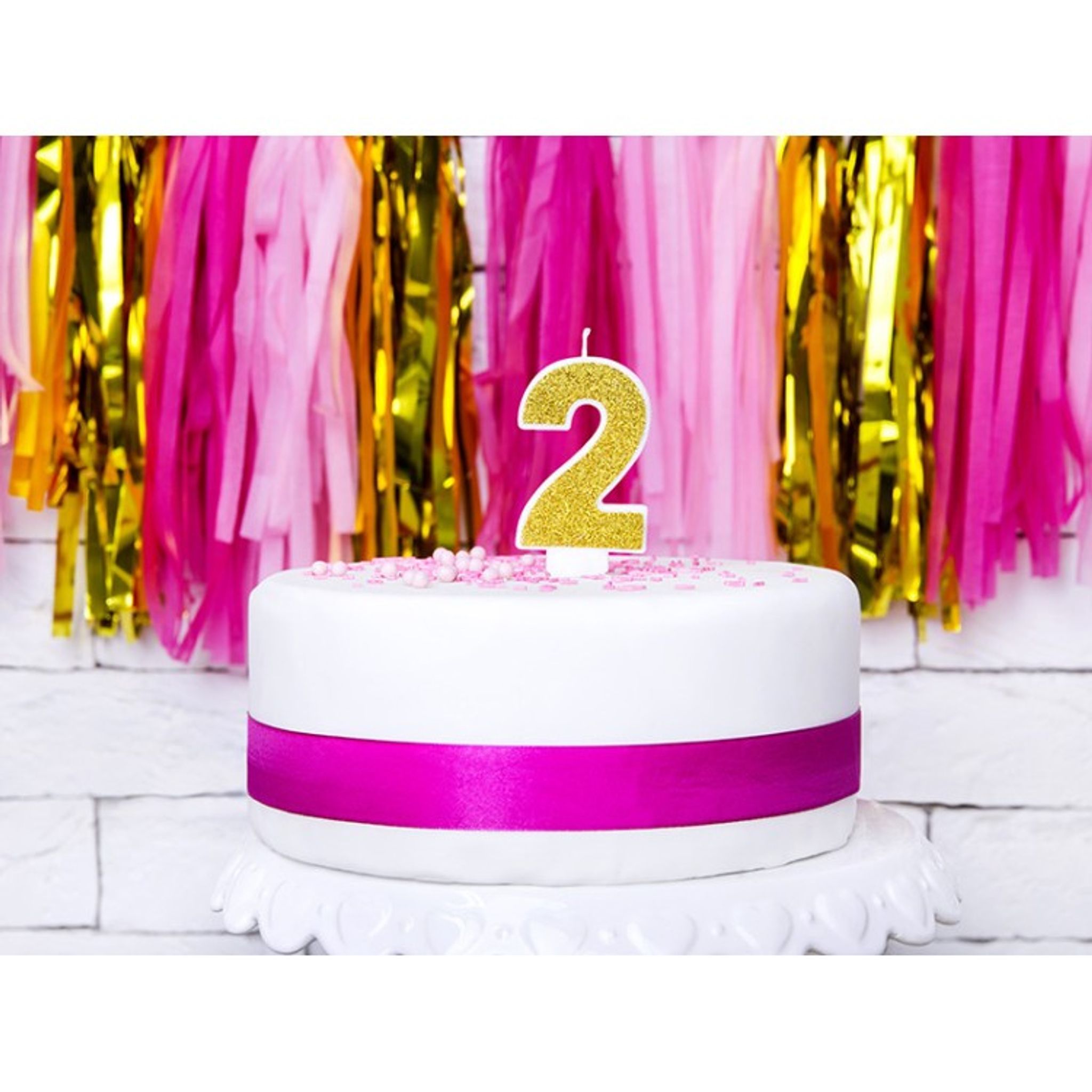 Detta snygga tårtljus i form av siffran 2 är snygg i glittrigt guld och kommer att skimra snyggt på födelsedagstårtan för den lilla 2-åringen. Kombinera med andra siffror om födelsedagsbarnet fyller ett annat tal med en 2:a i.