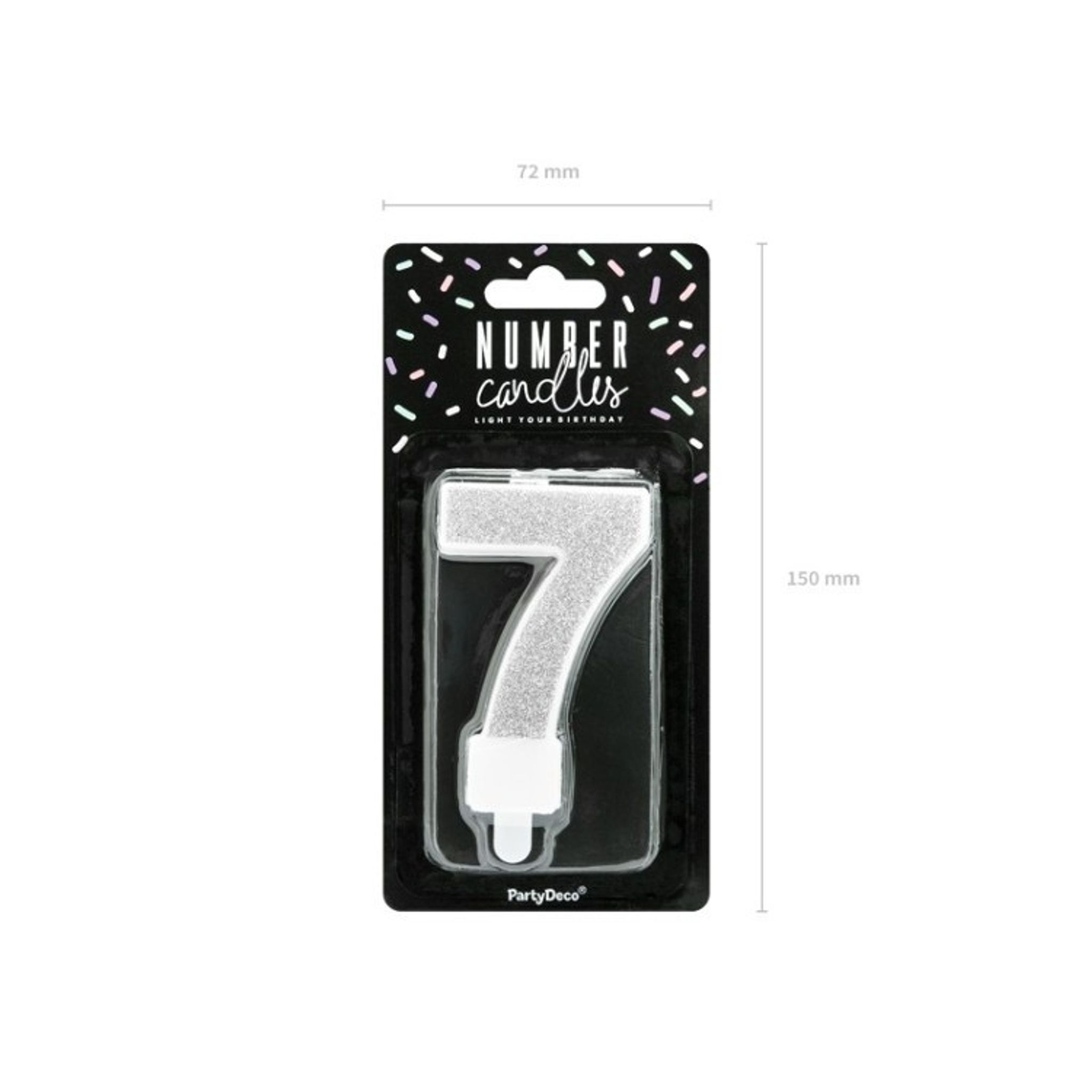 Ska du fira något som fyller 7 år eller kanske 70 år. Med hjälp av detta läckra glittriga tårtljus dekorerar du lätt tårtan. Tårtljuset är i formen av en silverglittrig 7:a. Kombinera med en silvrig nolla om det är 70-års kalas på gång.