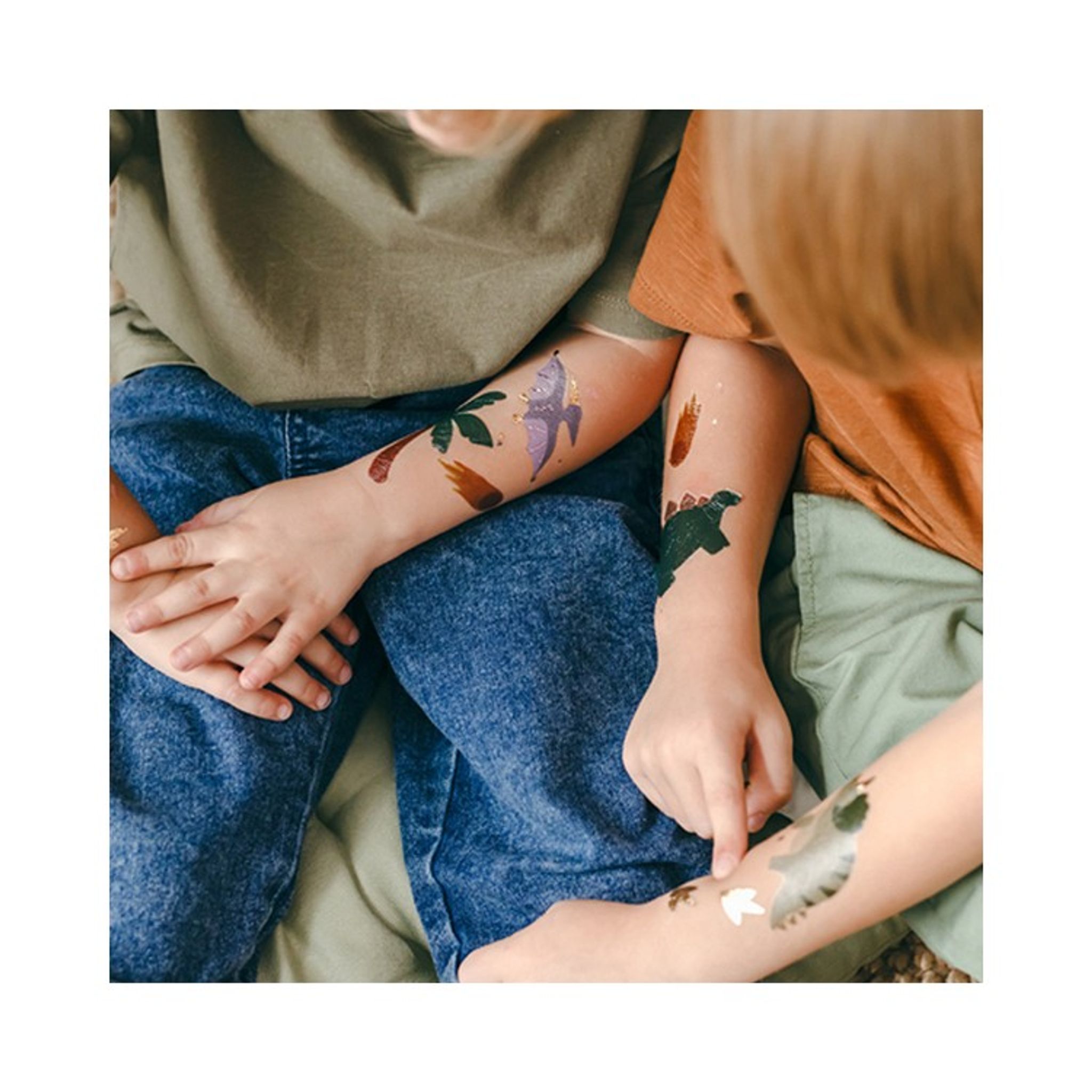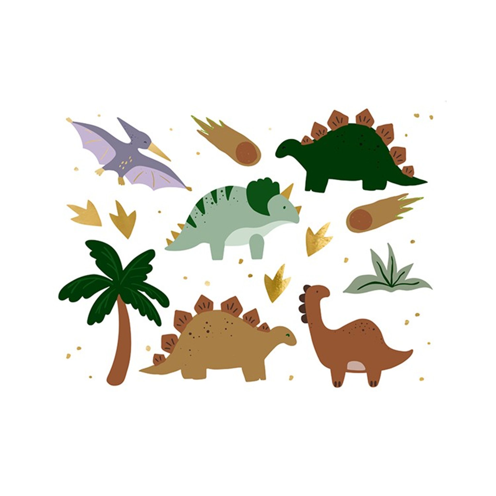Engångstatueringar med en blandning av dinosaurier i fina jordnära färger. Ge bort i present eller tatuera gästerna med en fin temporär tatuering som fästs på huden med hjälp av vatten.