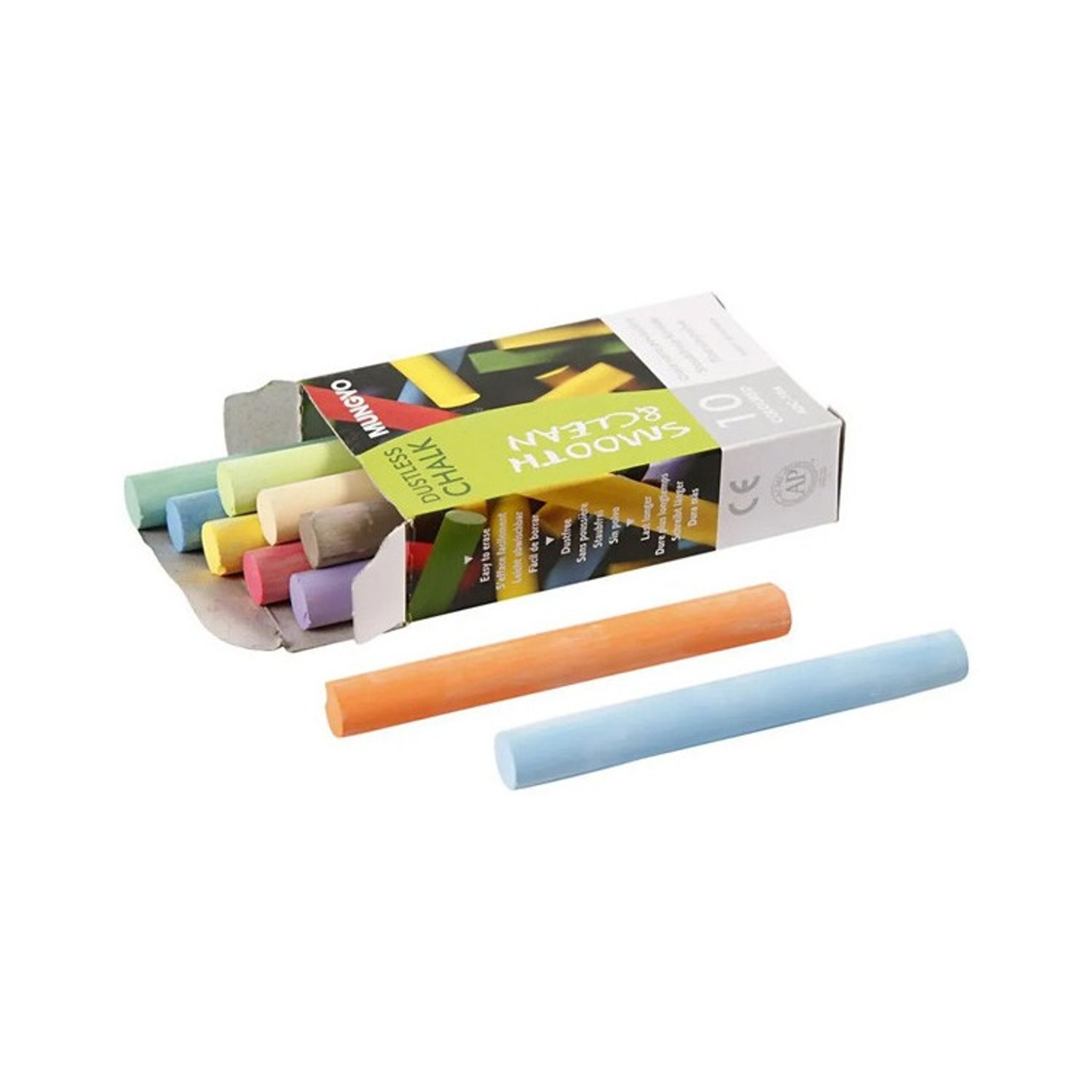 Tavelkritorna kommer i en liten pappersask som innehåller klassiska färger, bland annat röd, grön och blå.