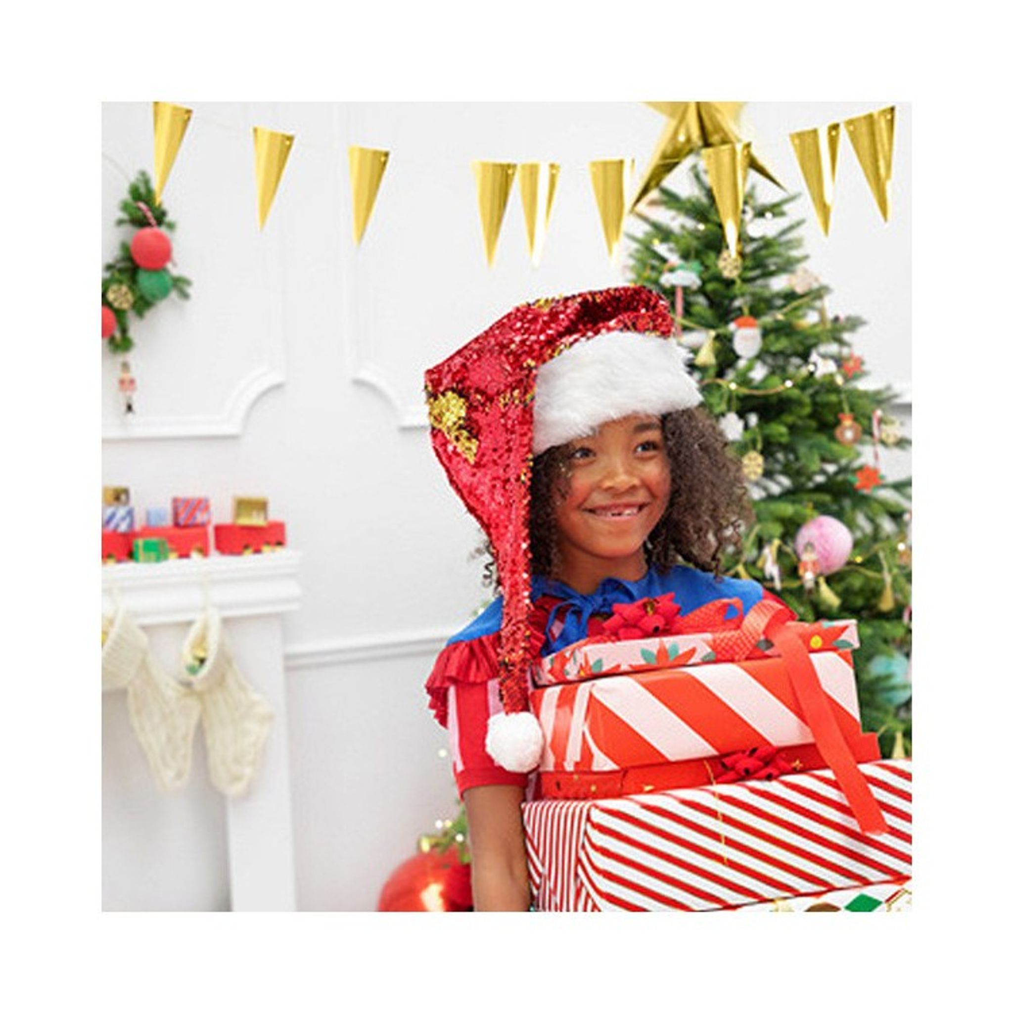 Tomteluva med paljetter i guld och rött. Paljetterna är röda på ena sidan och guld på andra. Så när du drar med handen så växlar tomteluvan färg. Ett måste till julens alla festligheter!