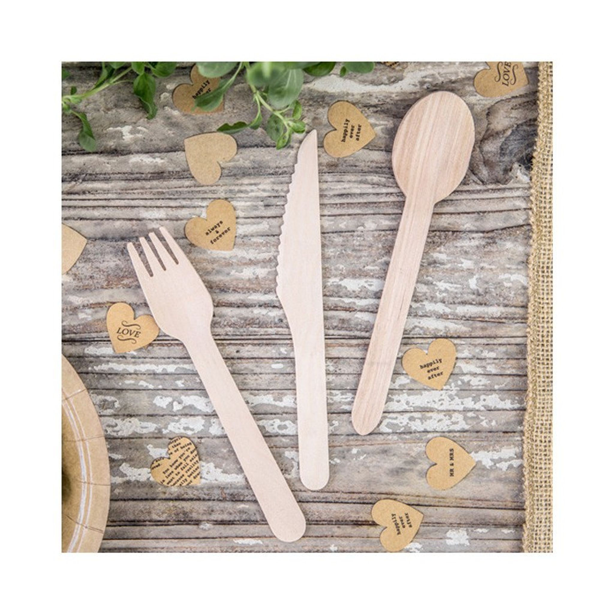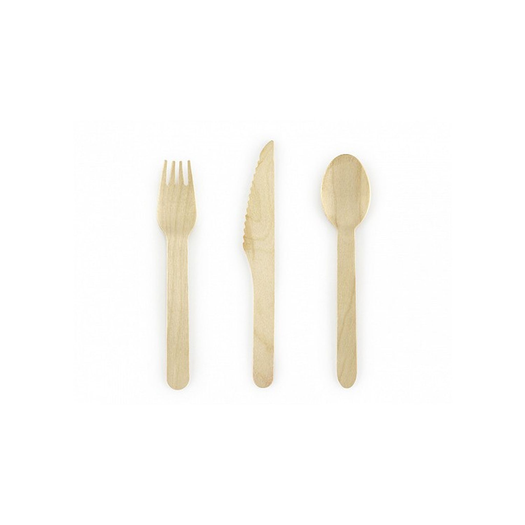 Snygga träbestick som passar dig som önskar ett mera miljövänligt alternativt än plastbestick. Förpackningen innehåller 18 st bestick, 6 knivar, 6 gafflar och 6 skedar. Storlek: 16 cm