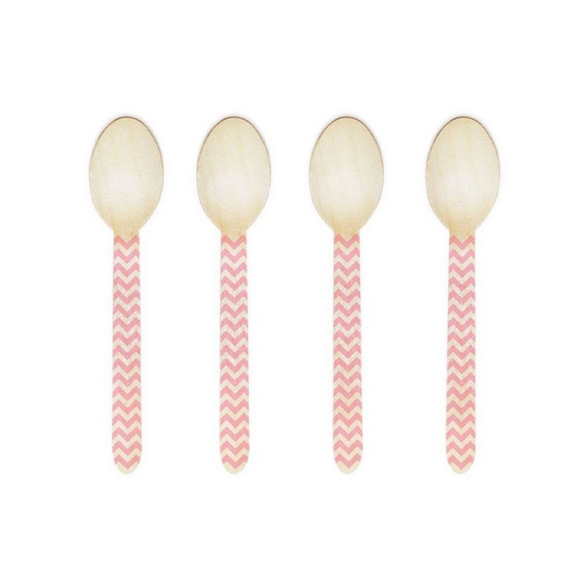 10 st träskedar med handmålat chevronmönster i fin ljusrosa färg. Giftfria färger. Mycket fint att duka med till kalaset som skall gå i ljusrosa toner