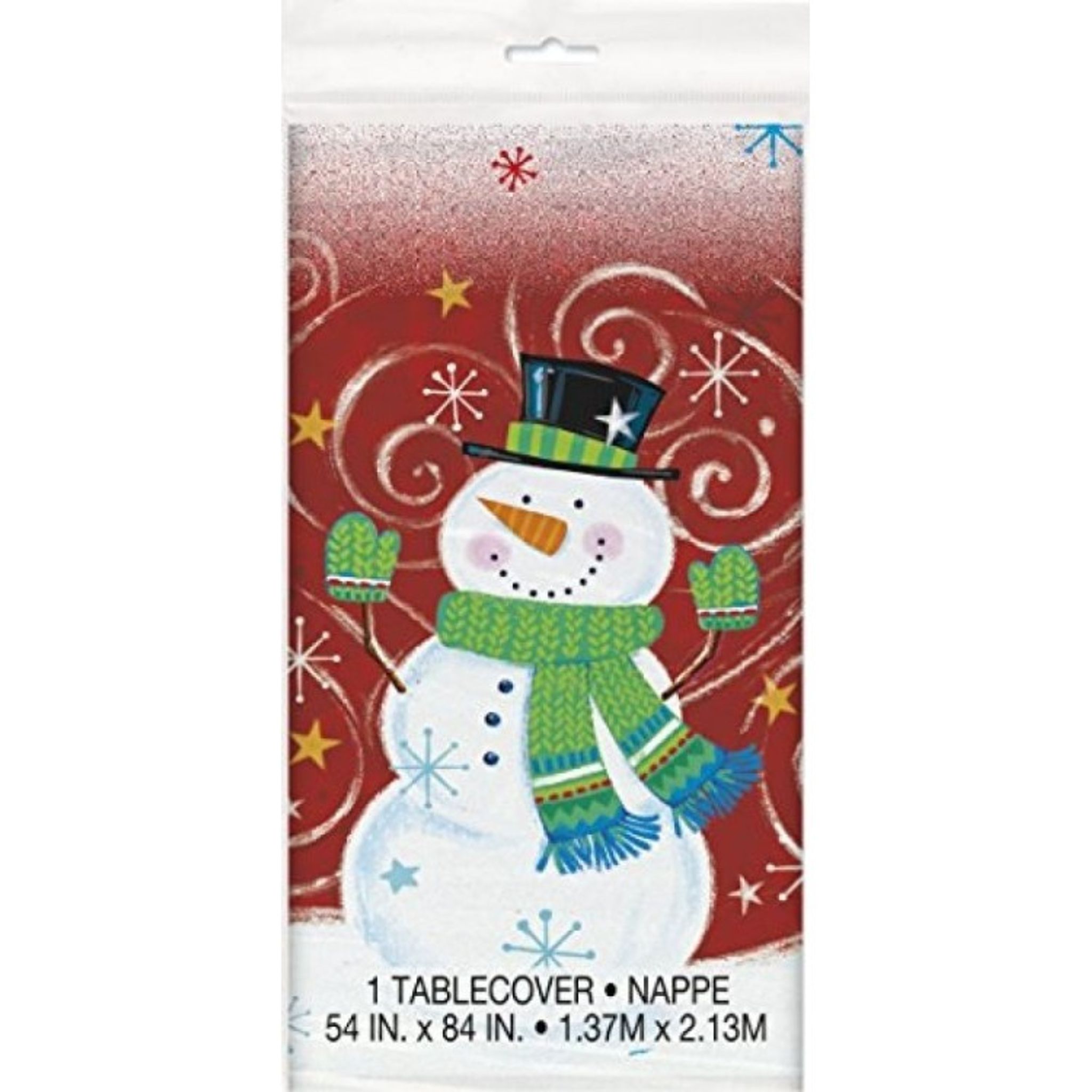 Plastduk med härligt motiv i fina glada färger. Duken har motiv av på sidorna med snögubbar och storleken är 137 x 274 cm